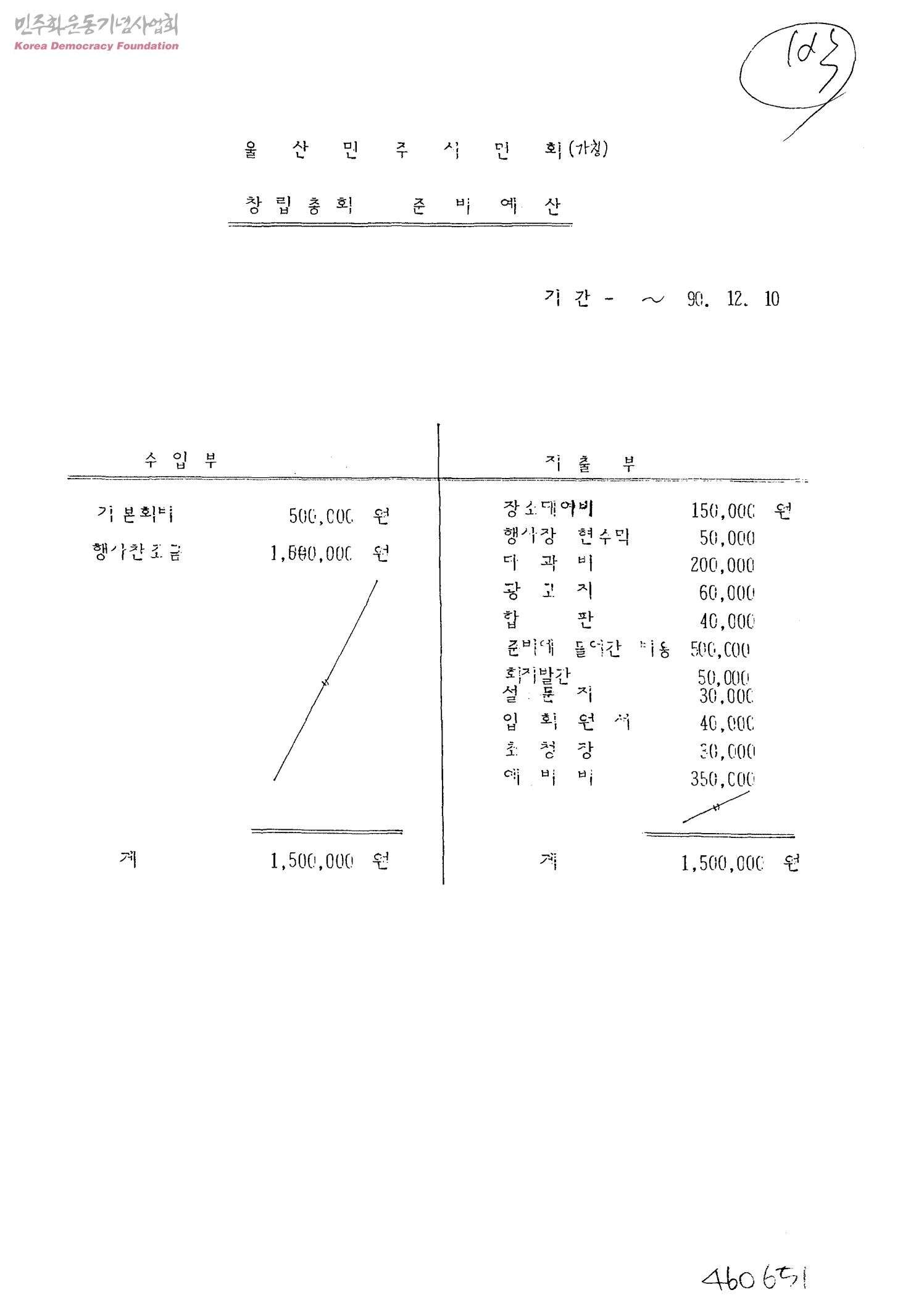 울산민주시민회(가칭) 창립총회 준비예산