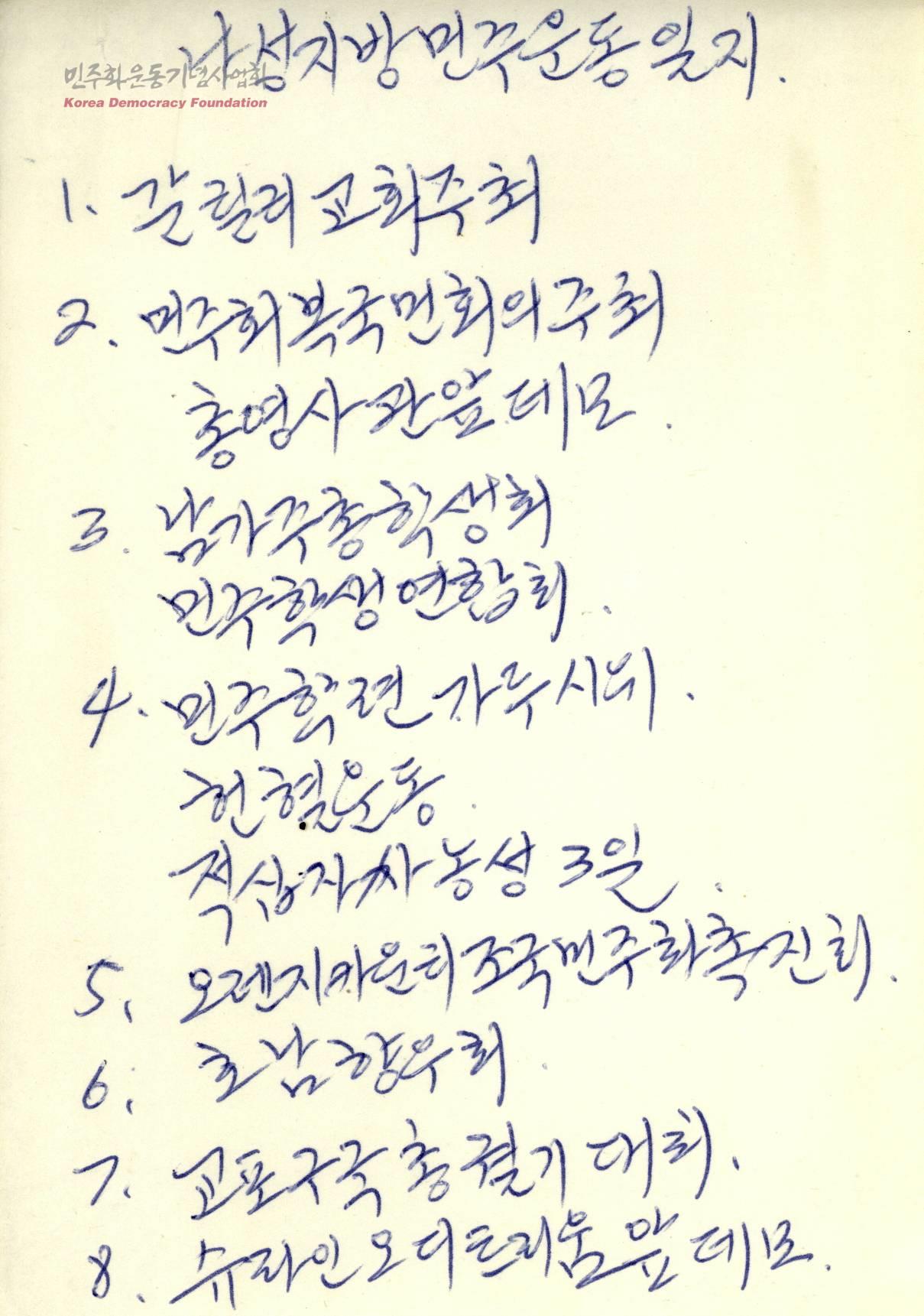 나성지방 민주운동 일지(자필)