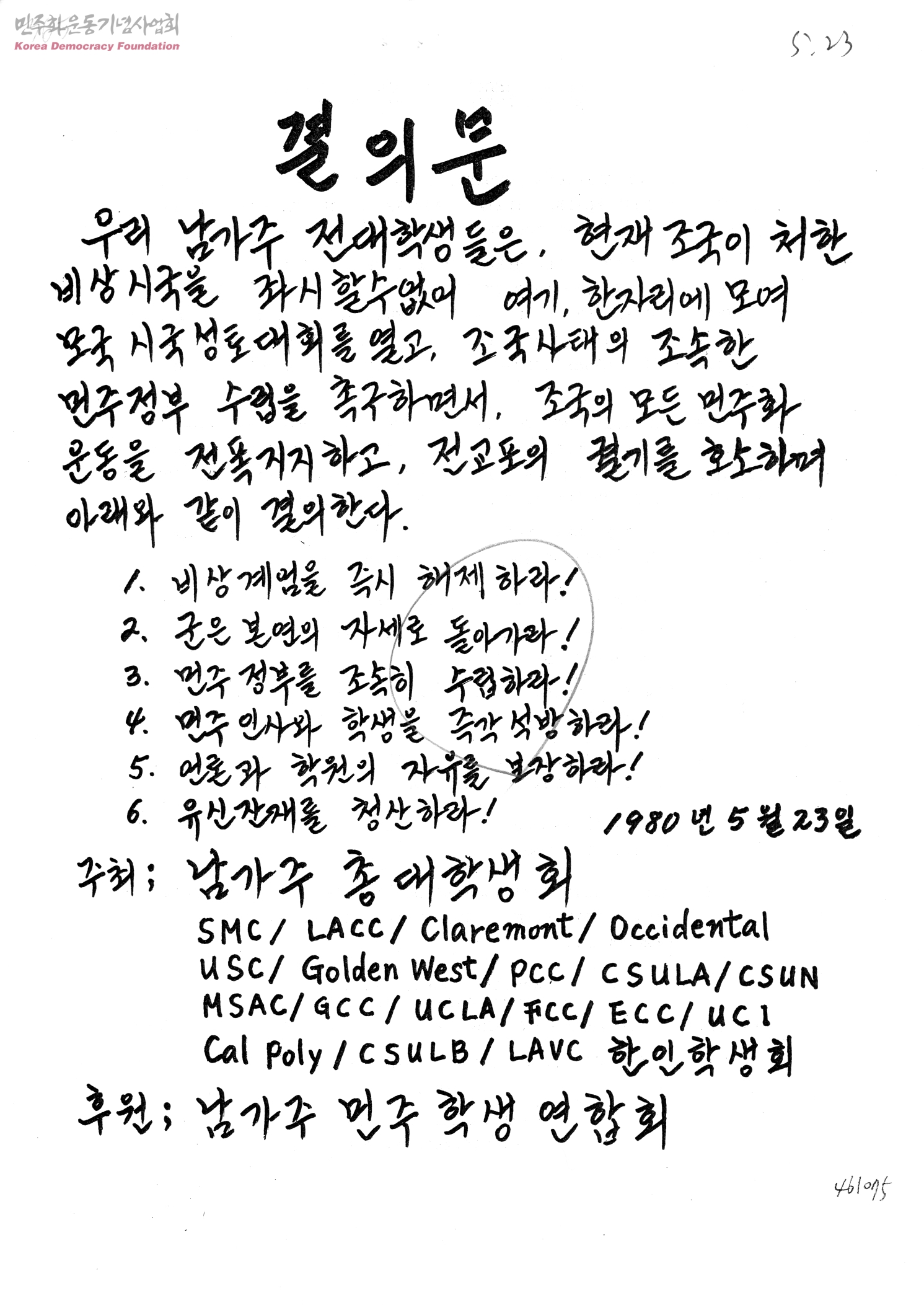 결의문-제2의 5.16군사쿠테타를 규탄한다
