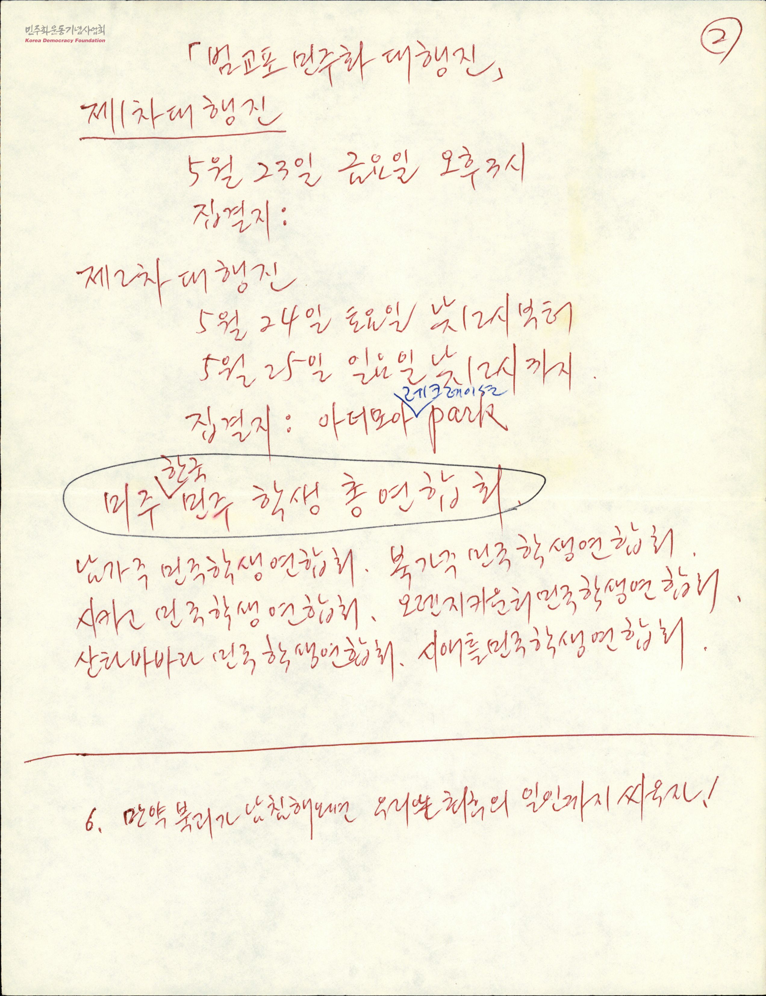 범교포 민주화 대행진(자필)