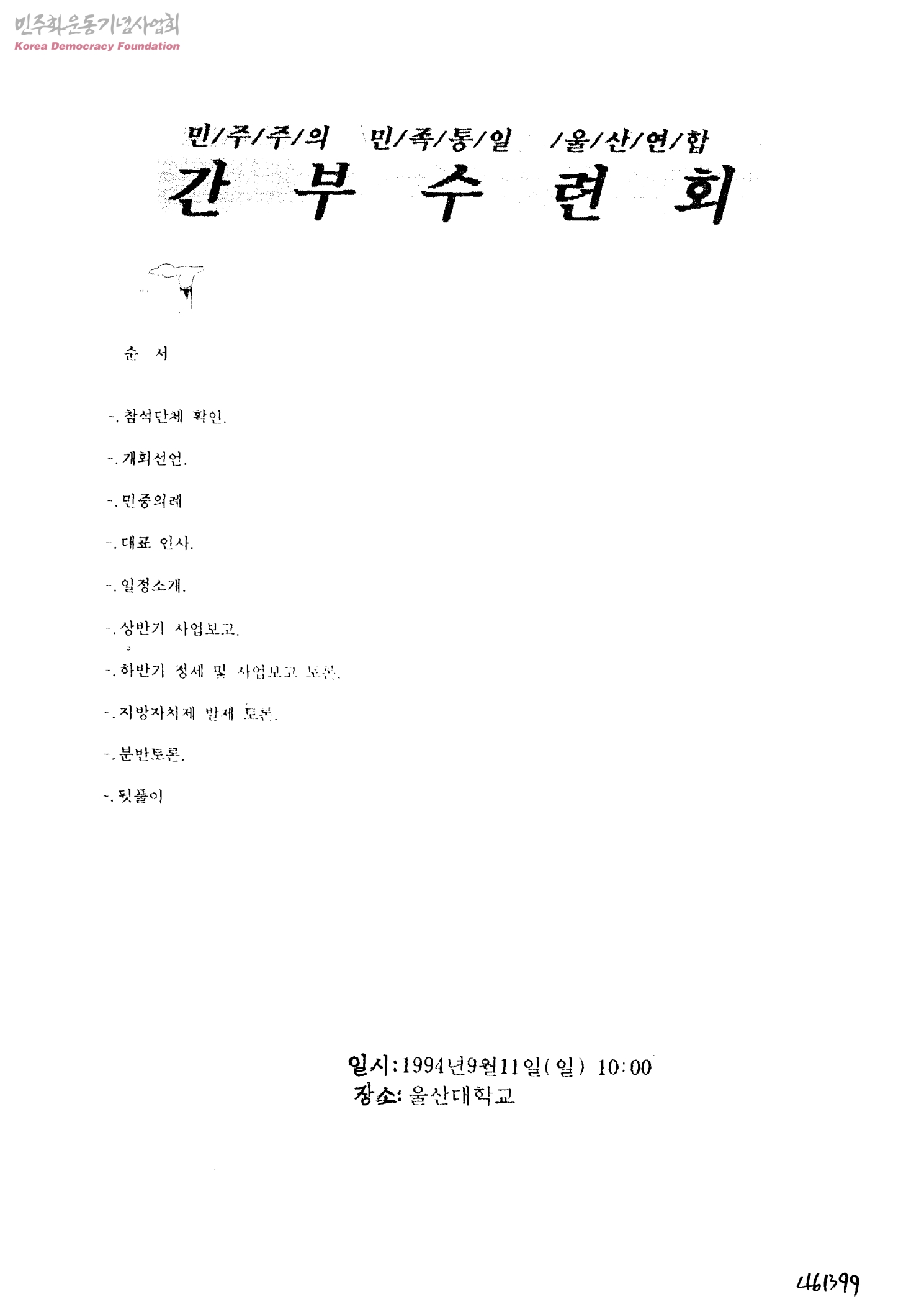 민주주의 민족통일 울산연합 간부수련회