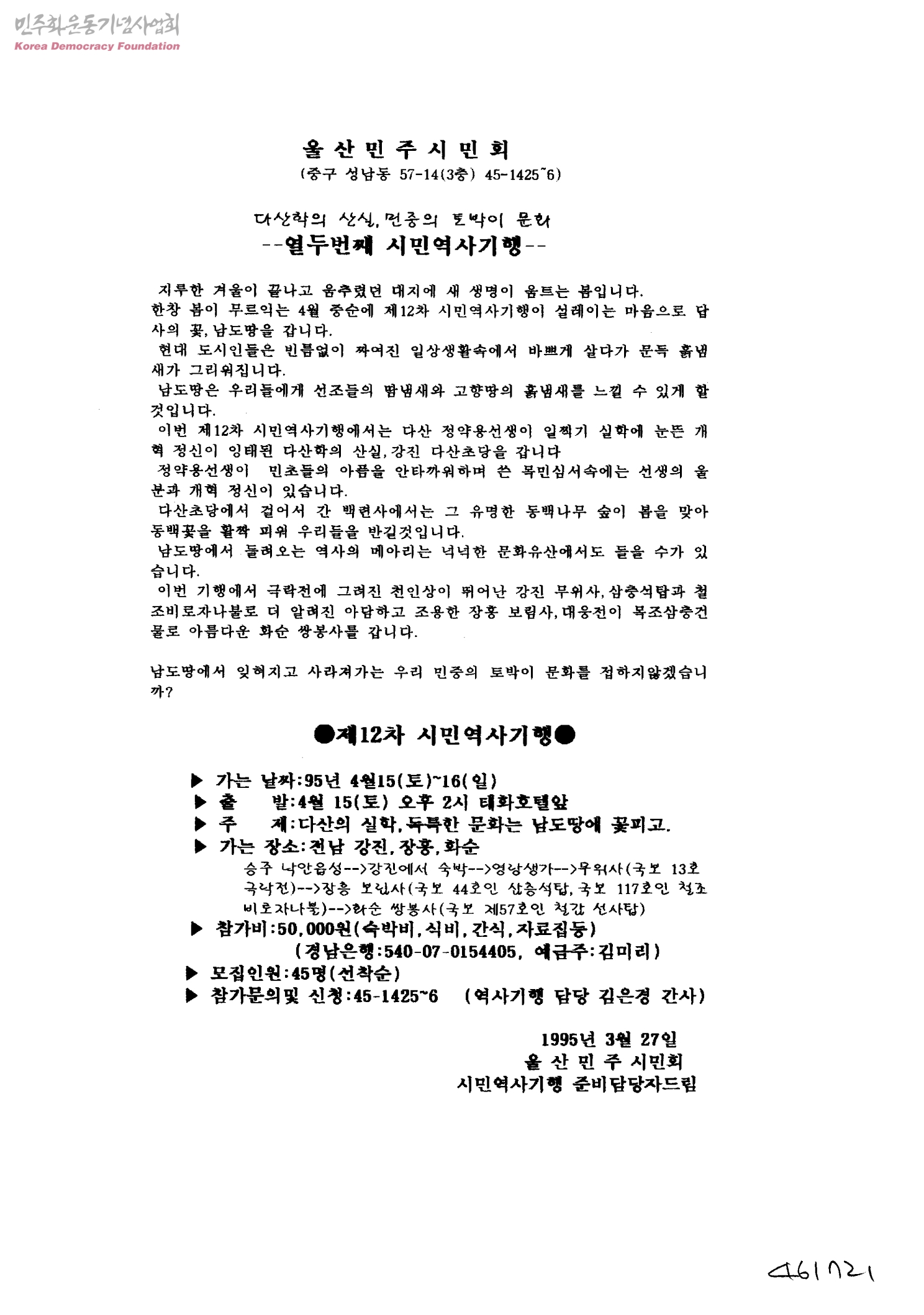 - 울산민주시민회시민역사기행준비담당자