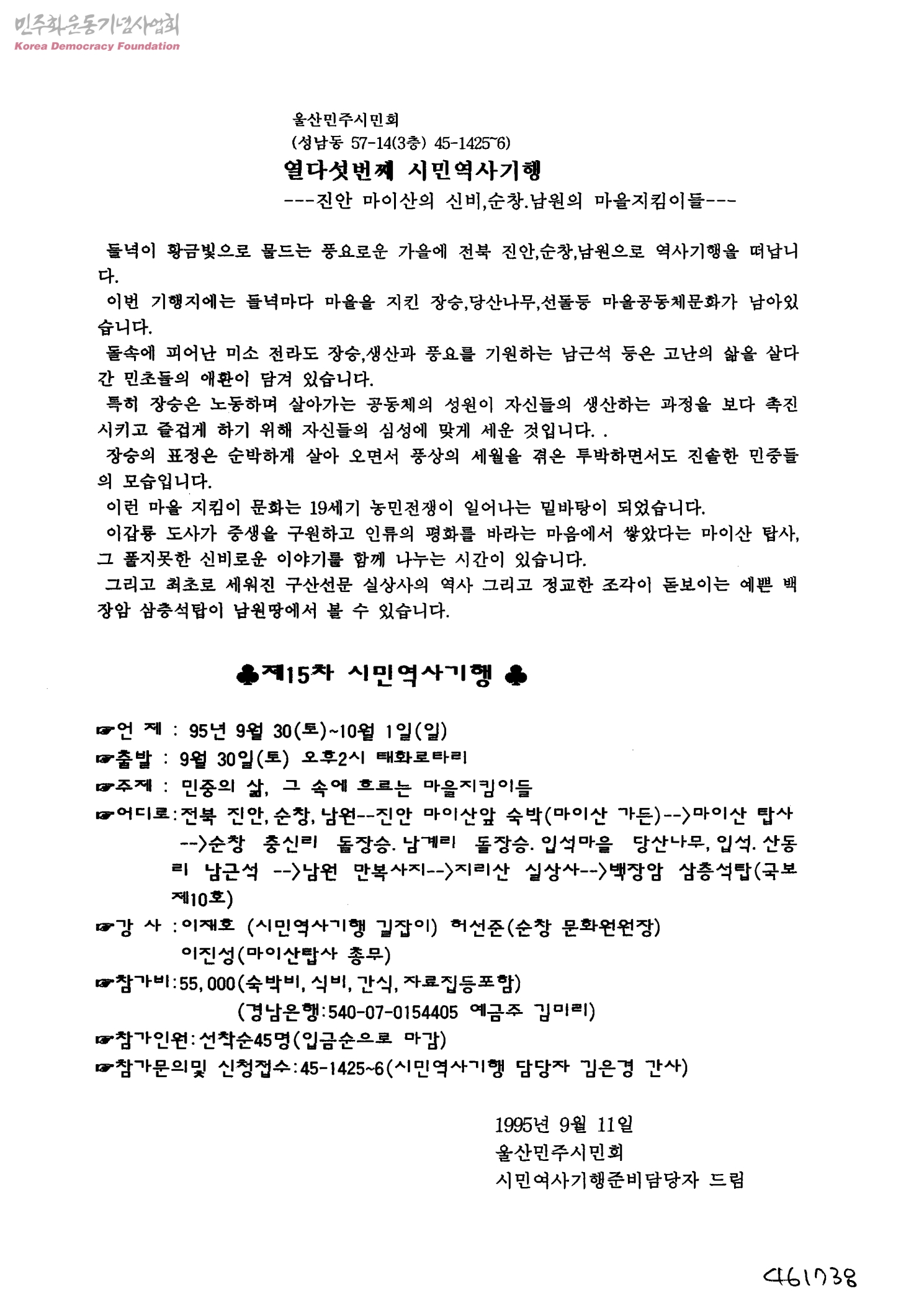 열다섯번째 시민역사기행-진안 마이산의 신비,순창.남원의 마을지킴이들
