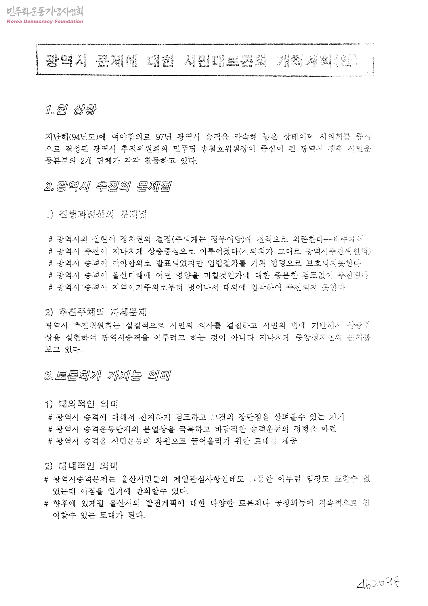 광역시 문제에 대한 시민대토론회 개최계획(안)