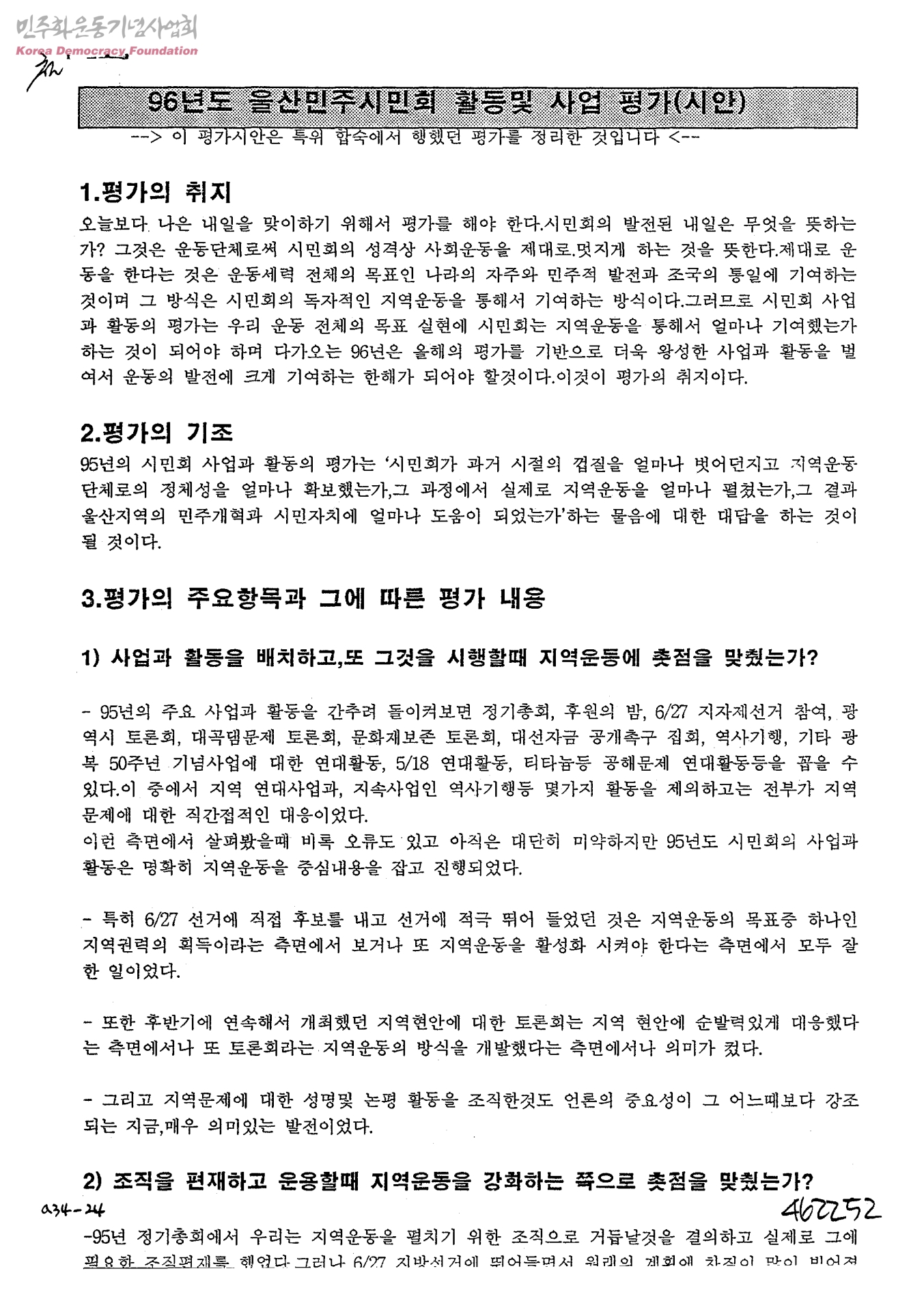 96년도 울산민주시민회 활동및 사업평가(시안)