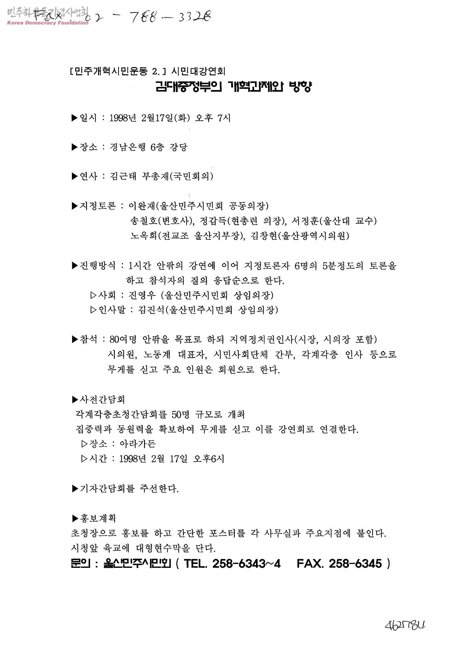 민주개혁시민운동2 시민대강연회-김대중 정부의 개혁과제와 방향