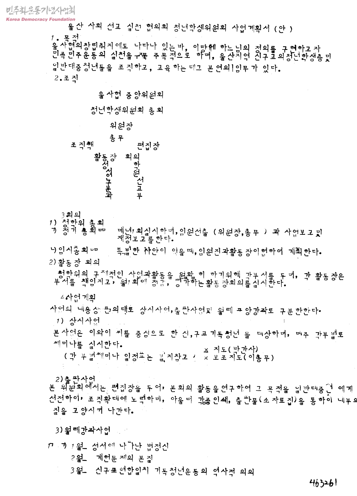 울산사회 선교 실천 협의회 청년학생위원회 사업계획서(안)