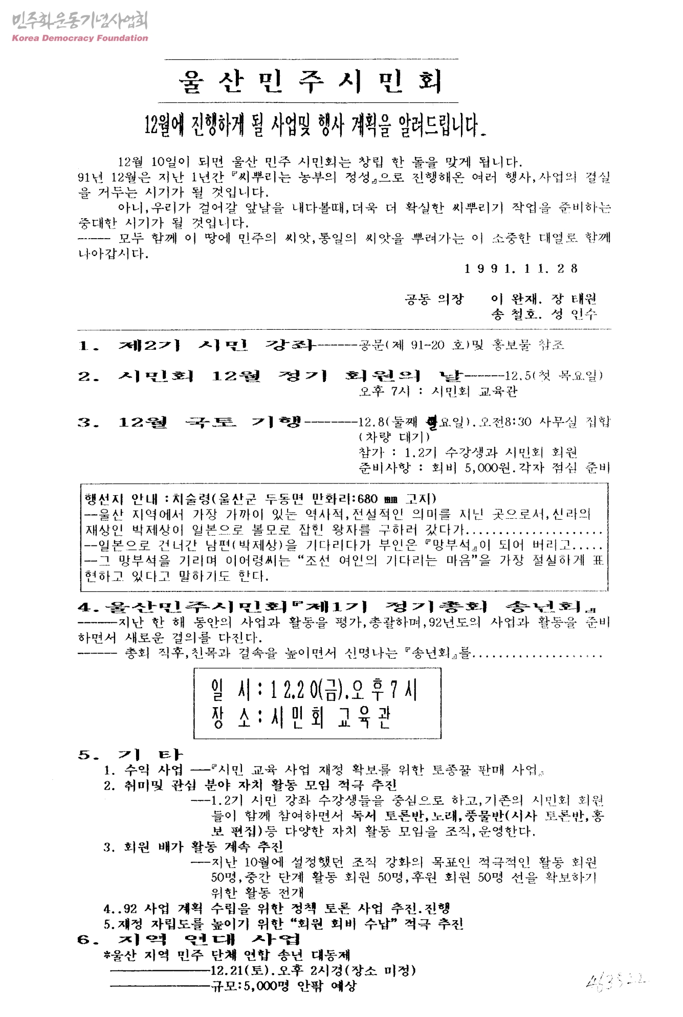 12월에 진행하게 될 사업및 행사 계획을 알려드립니다