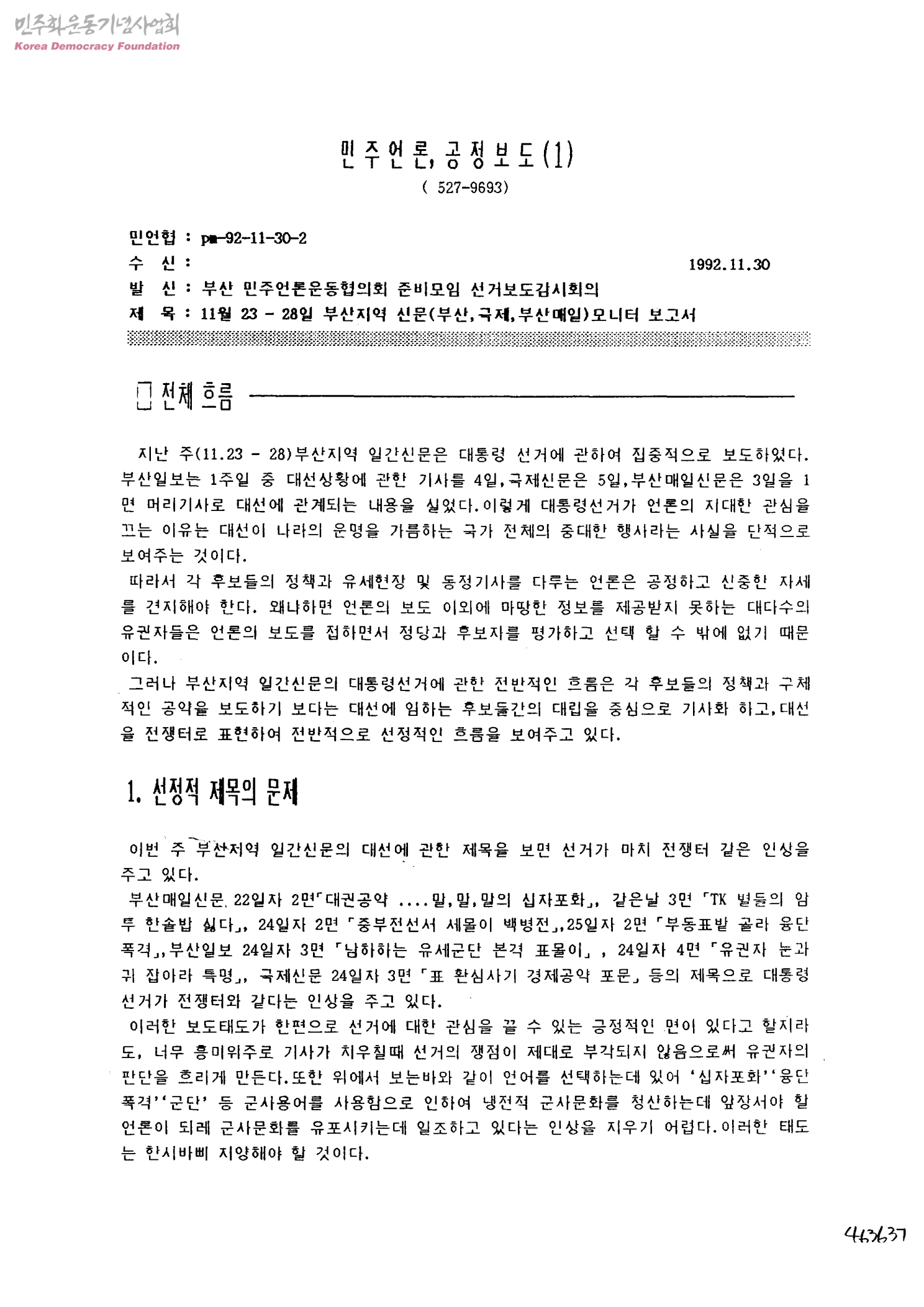 11월 23-28일 부산지역 신문(부산,국제,부산 매일)모니터 보고서[발신:부산 민주언론운동협의회 준비모임 선거보도감시회의]