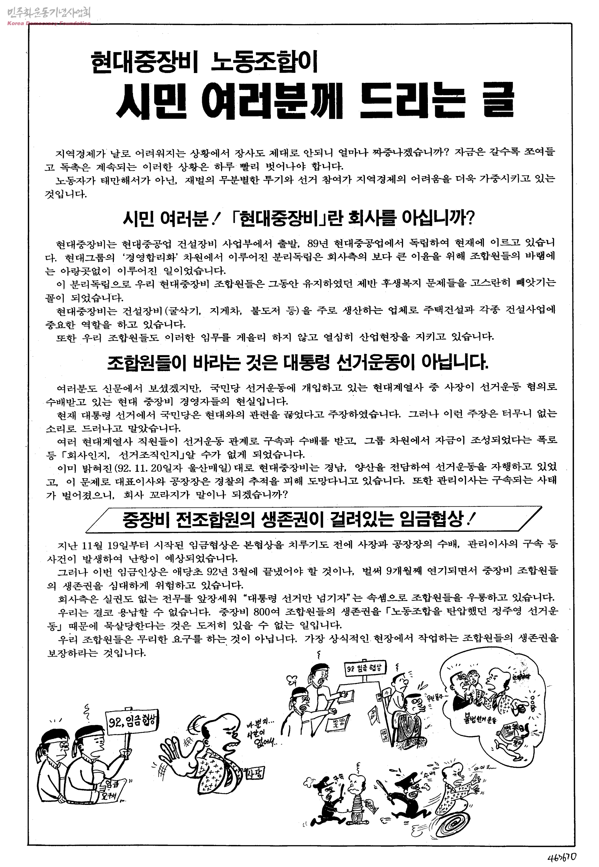 현대중장비 노동조합이 시민 여러분께 드리는 글