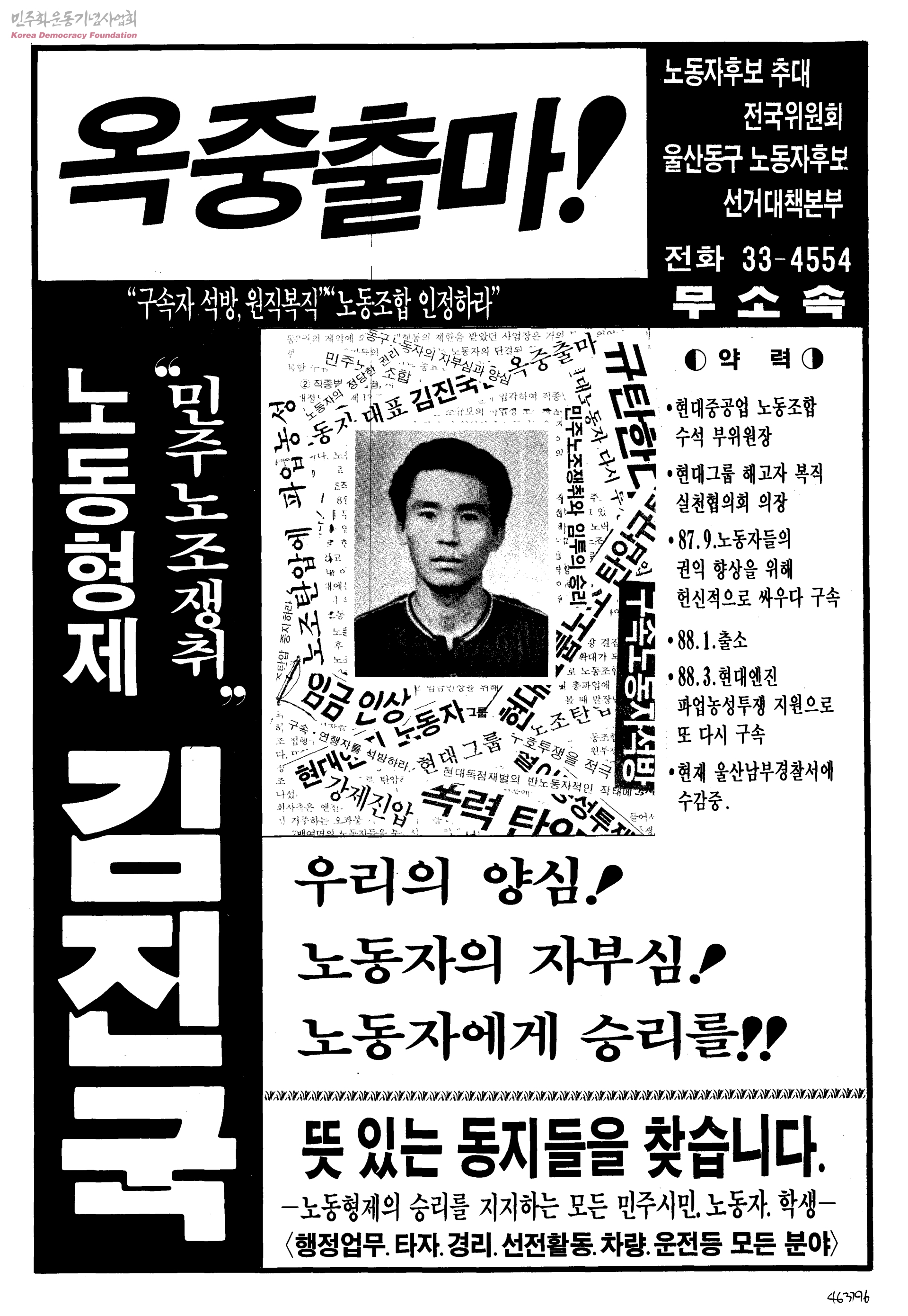 옥중출마!-"구속자 석방, 원직복직" "노동조합 인정하라"