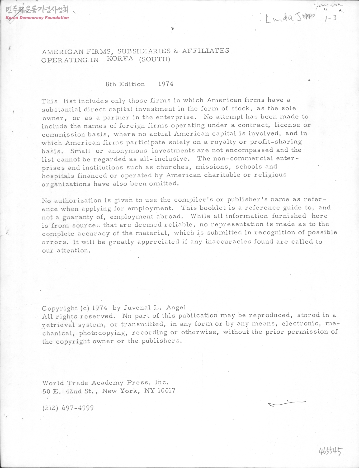 AMERICAN FIRMS, SUBSIDIARIES & AFFILIATES OPERATION IN KOREA(SOUTH)