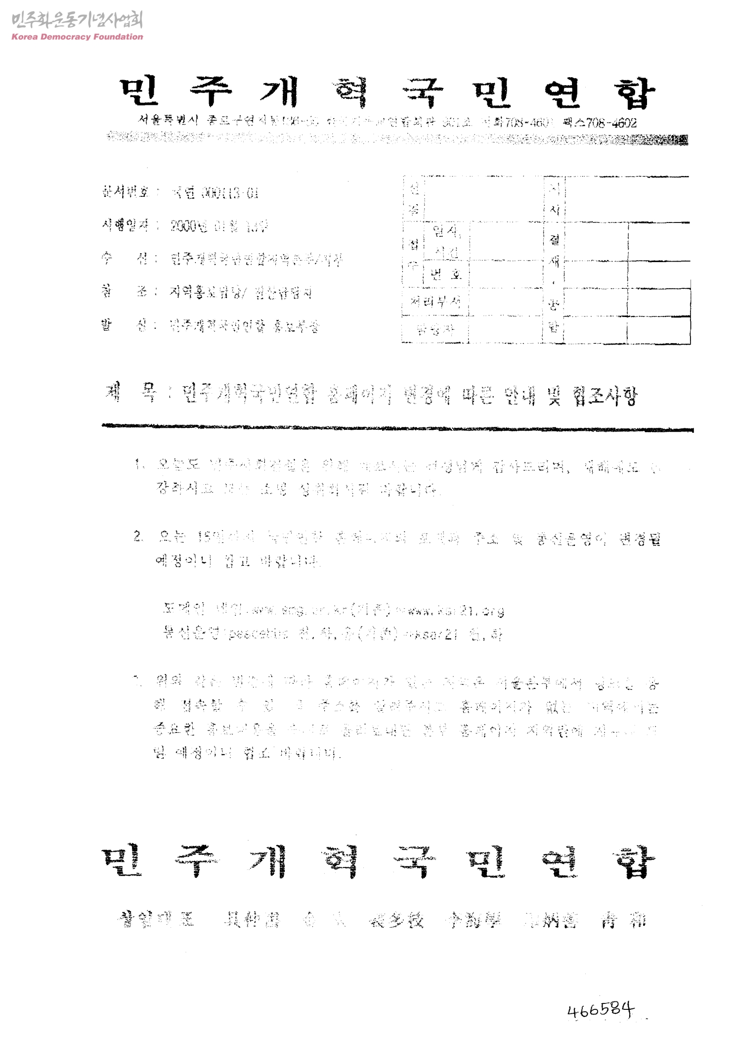 민주개혁국민연합 홈페이지 변경에 따른 안내 및 협조사항[수신:민주개혁국민연합지역본부/지부, 발신:민주개혁국민연합 홍보부장]