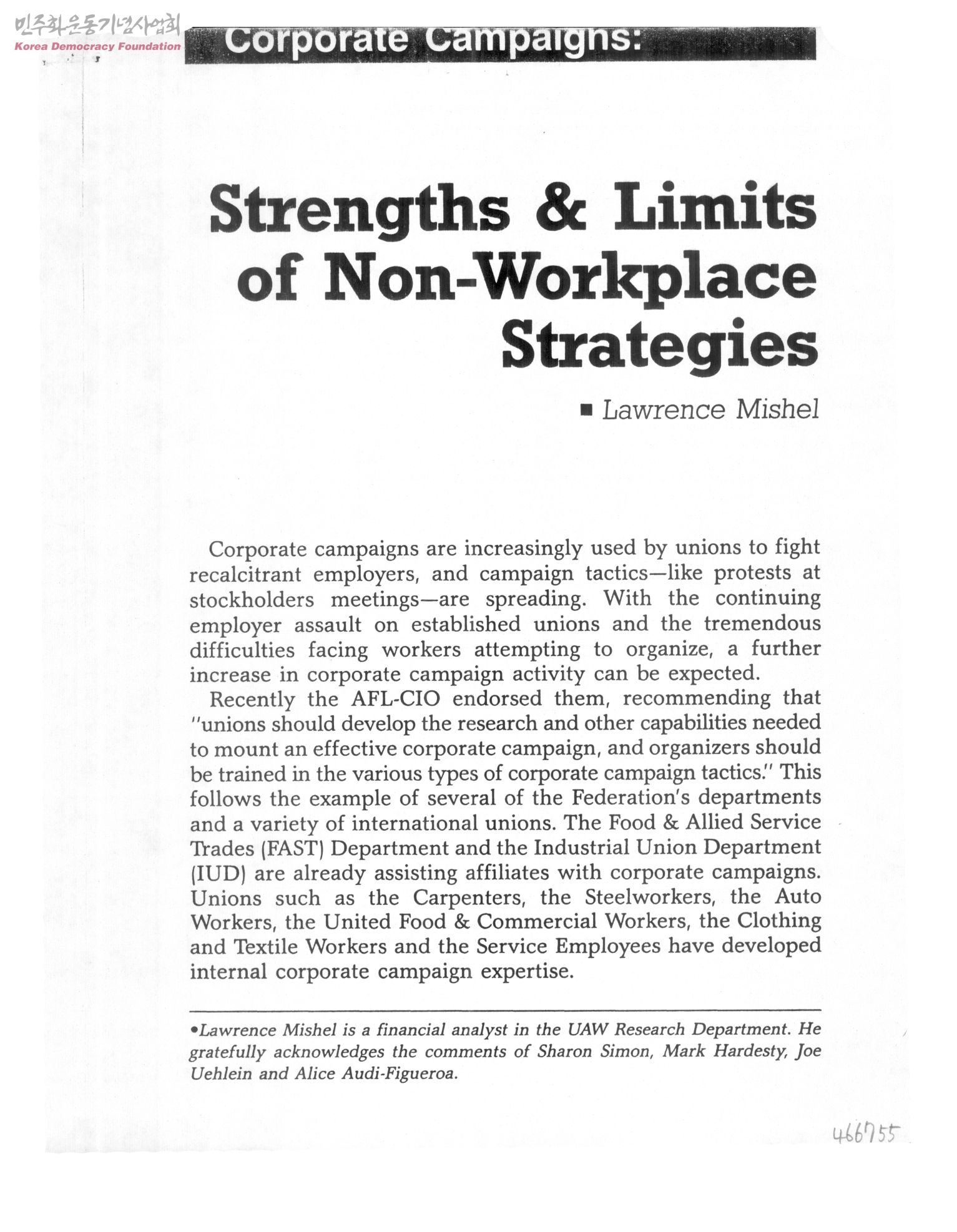 Corporate Campaigns-Strengths & Limits of Non-Workplace Strategies 외