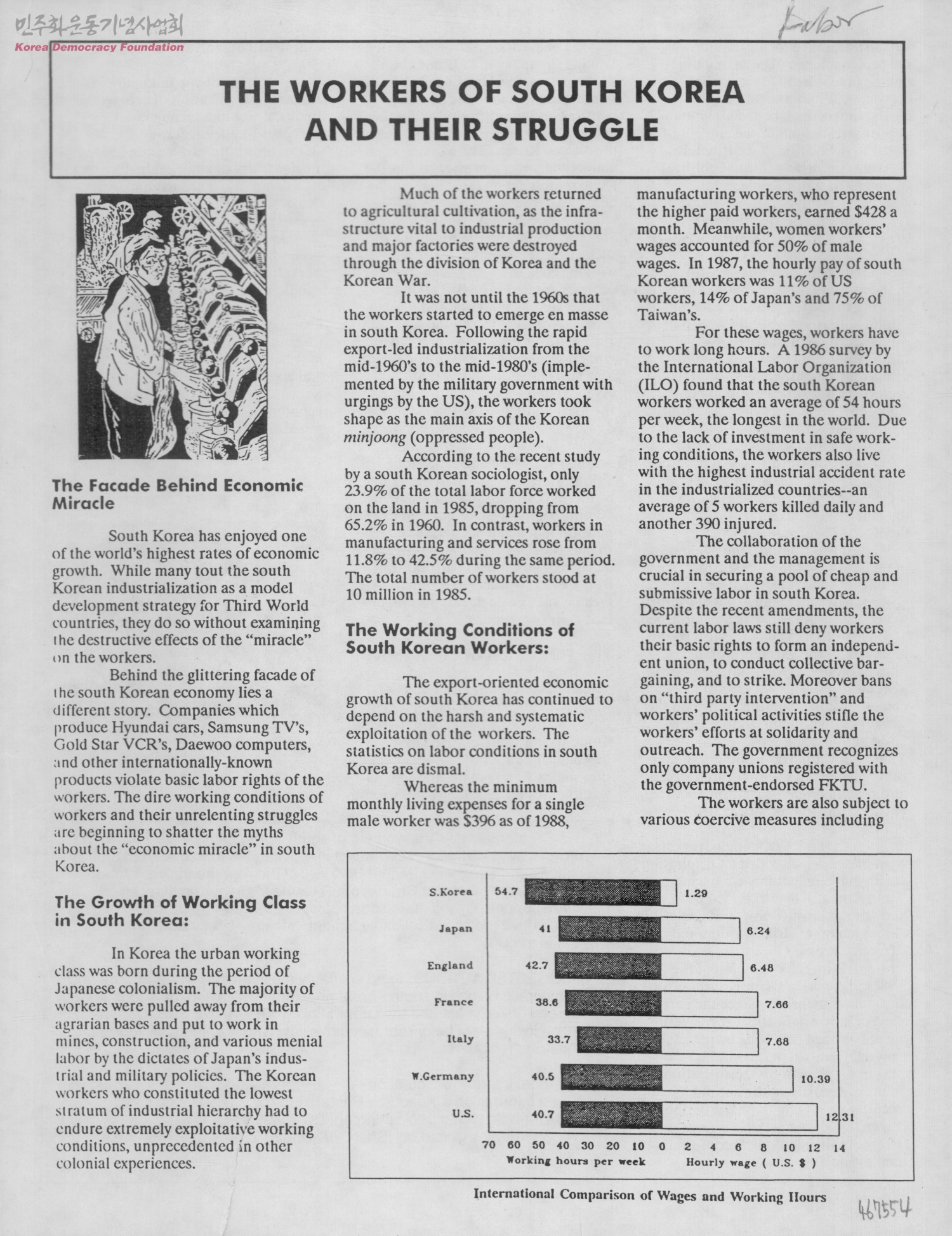 - -한국 노동자 투쟁관련 내용 -목차 1. 경제 기적의 이면 2. 한국에서의 노동자 계급의 성장 3. 한국 노동자의 노동상황 4. 전평(조선노동조합전국평의회) 결성 5. 전노협 결성.