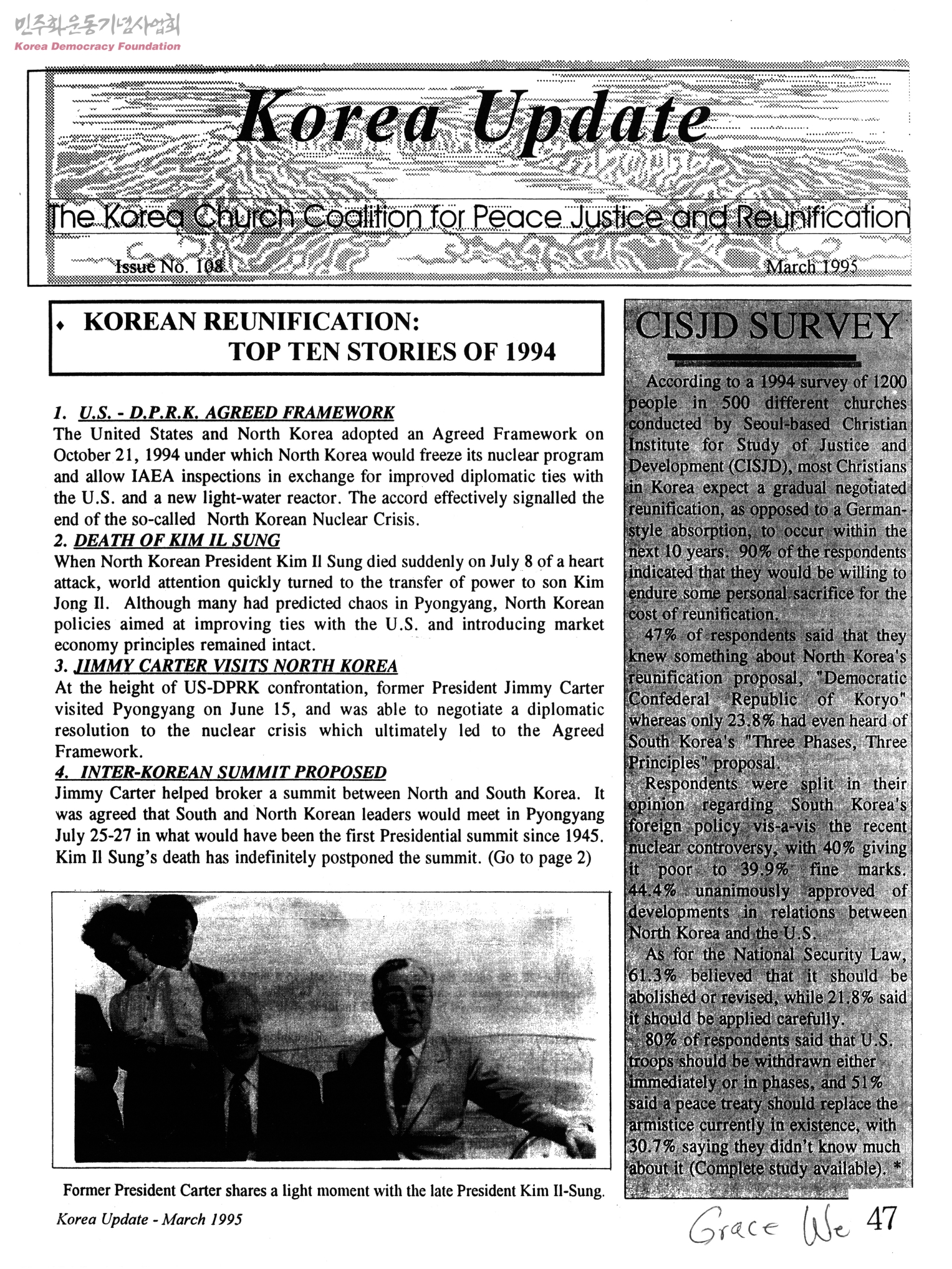 - KOREAN REUNIFICATION:TOP TEN STORIES OF 1994 UPDATE ON THE US-DPRK AGREED FRAMEWORK WHAT DOES 1995 HOLD FOR KOREA?(KCC staff look ahead...) 외