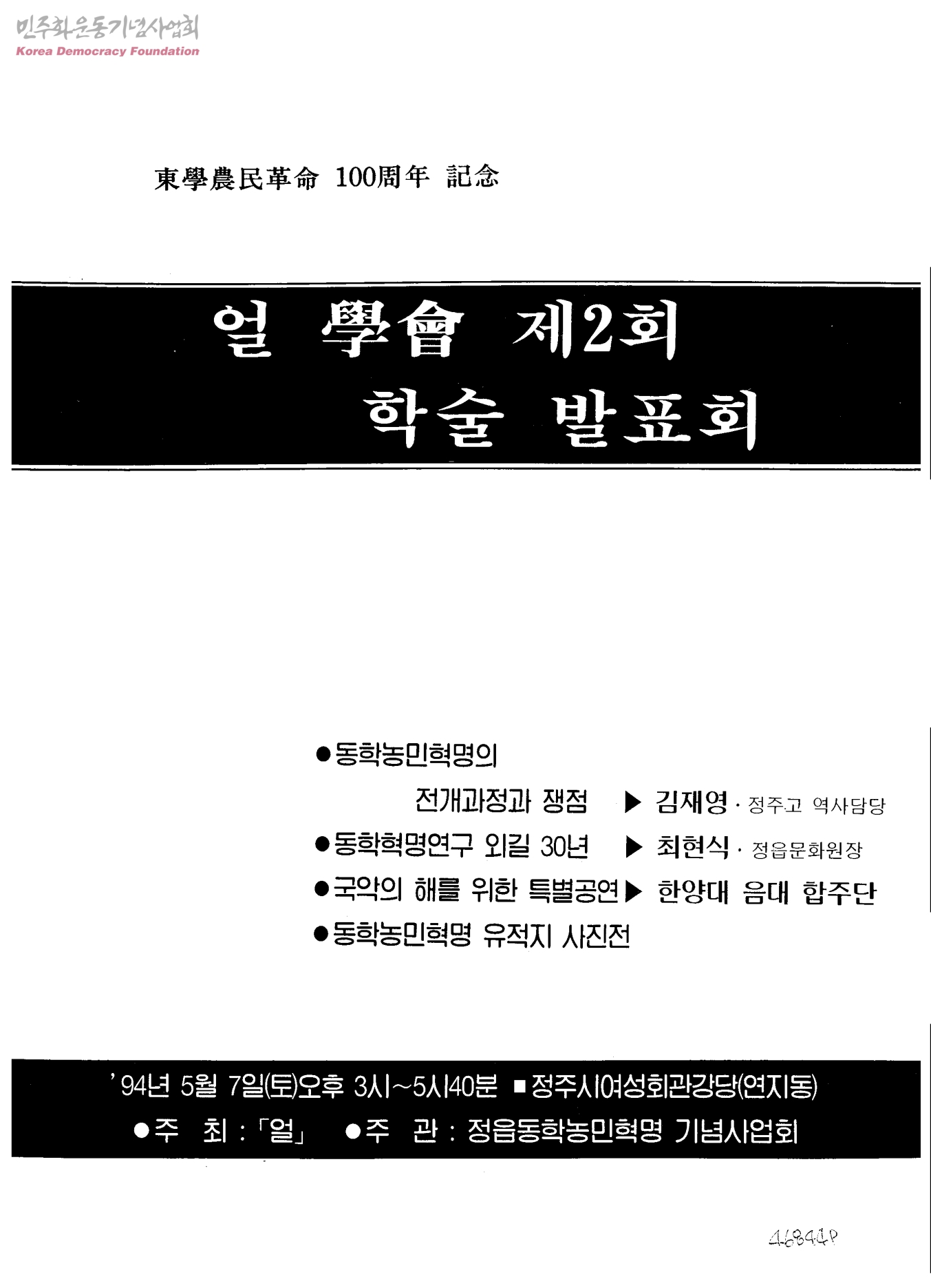 東學農民革命 100周年 記念 얼 學會 제2회 학술 발표회