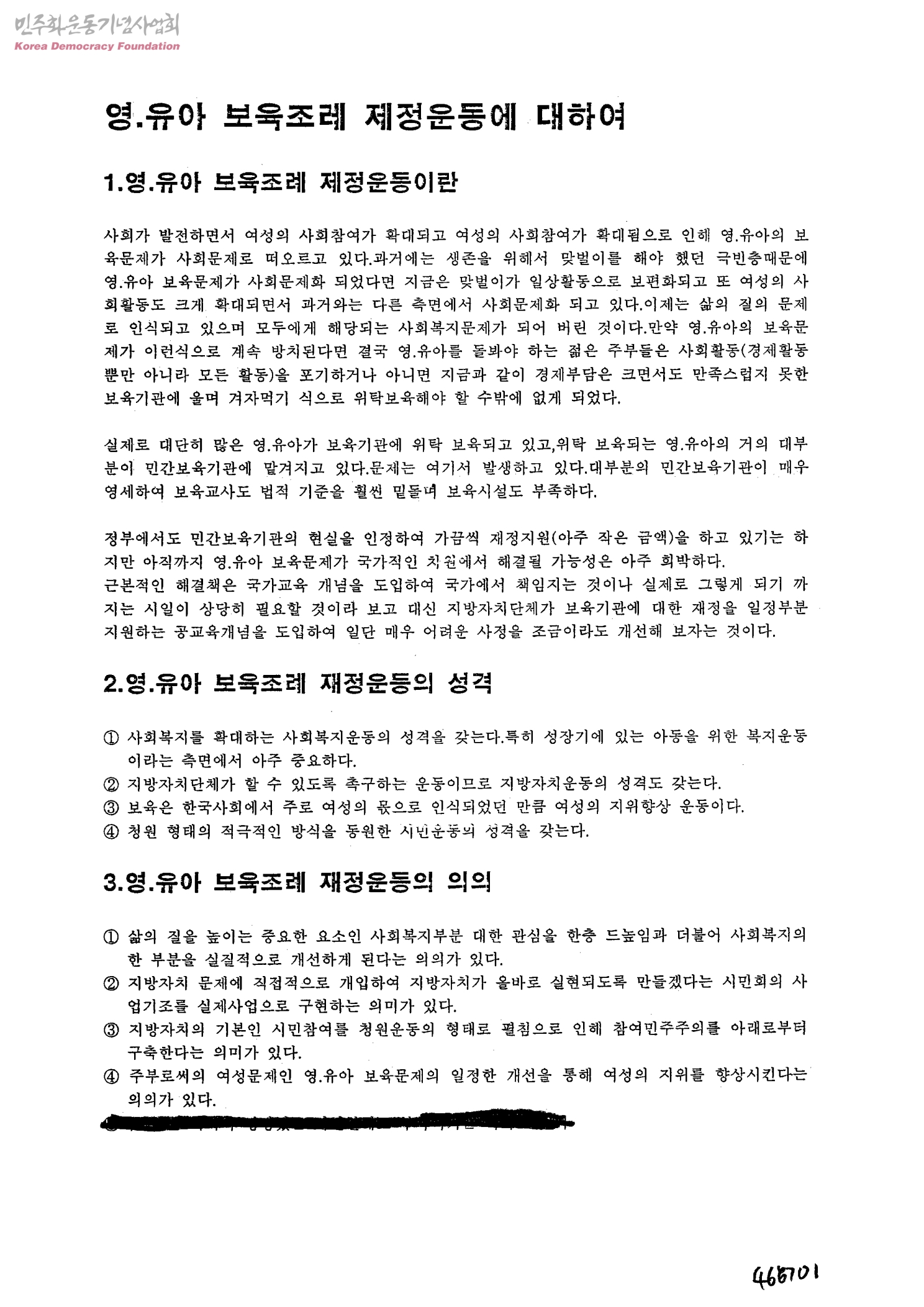 영.유아 보육조레 제정운동에 대하여