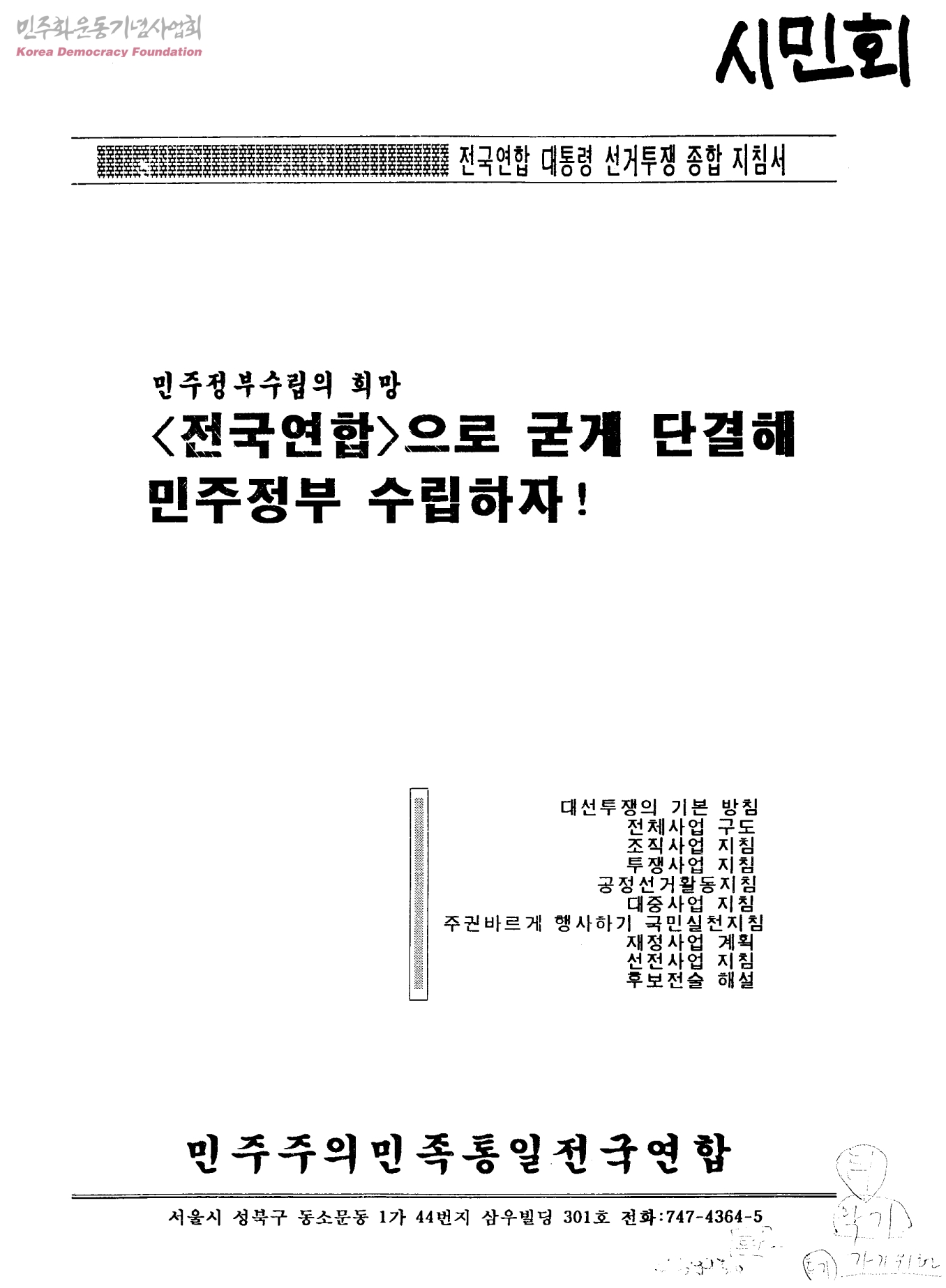 민주정부수립의 희망<전국연합>으로 굳게 단결해 민주정부 수립하자!-전국연합 대통령 선거투쟁 종합 지침서