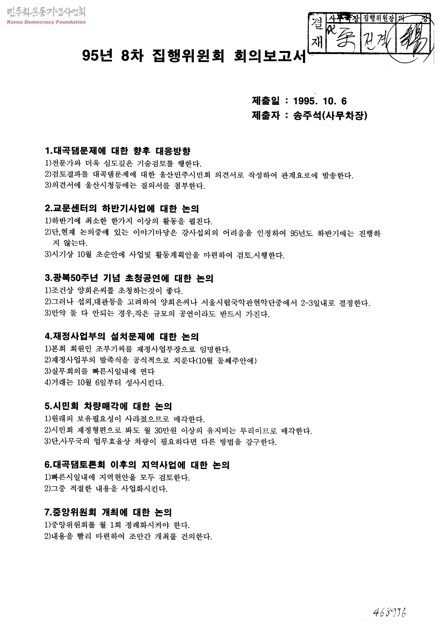 95년 8차 집행위원회 회의보고서