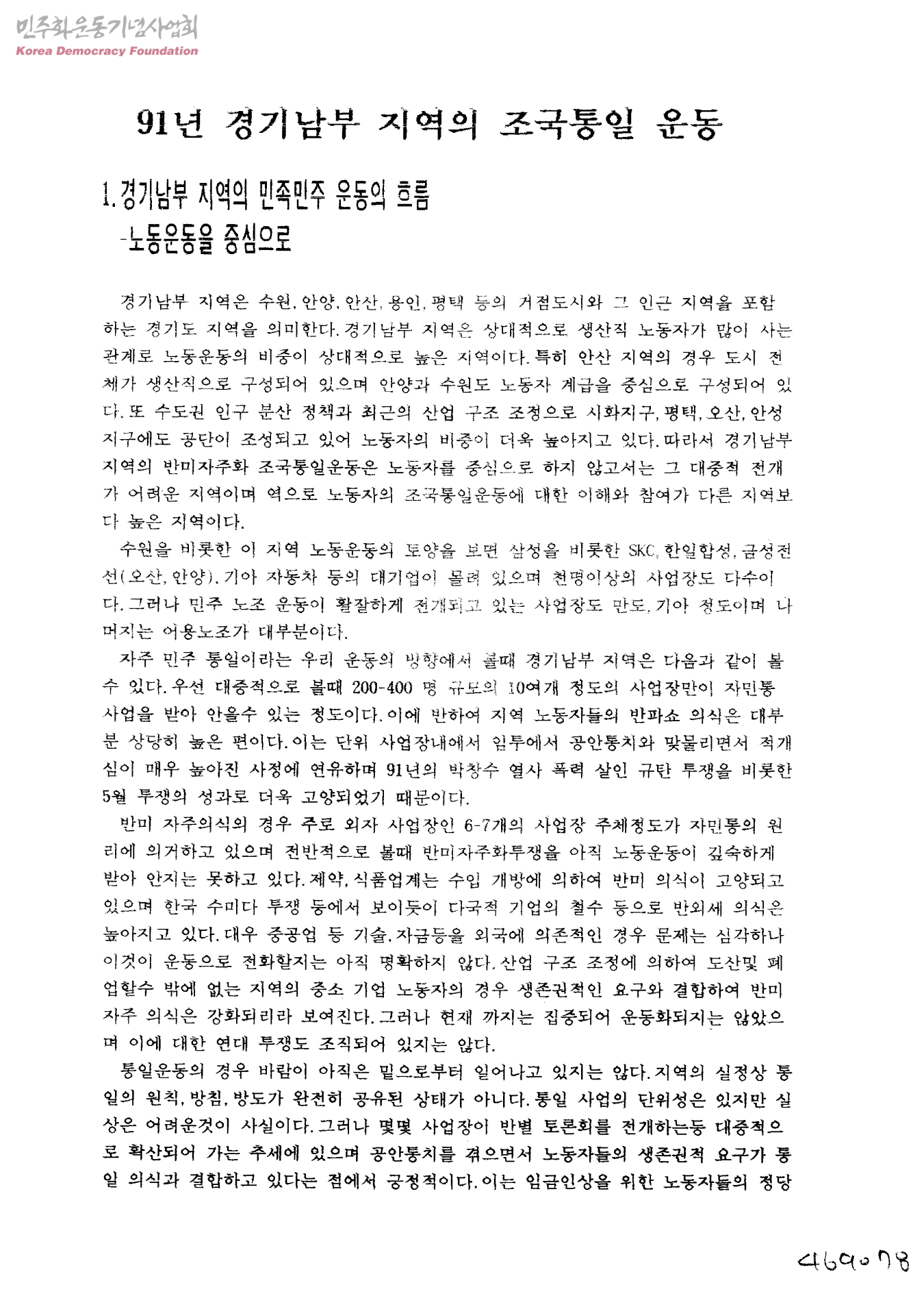 91년 경기남부 지역의 조국통일 운동