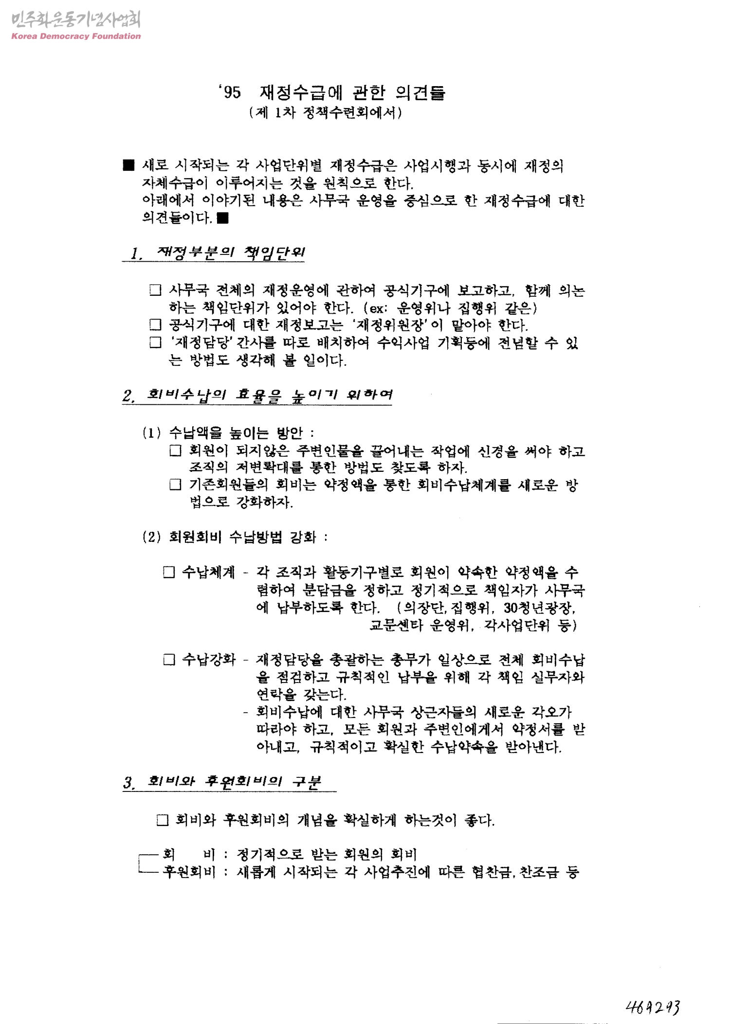'95 재정수급에 관한 의견들(제1차 정책수련회에서)