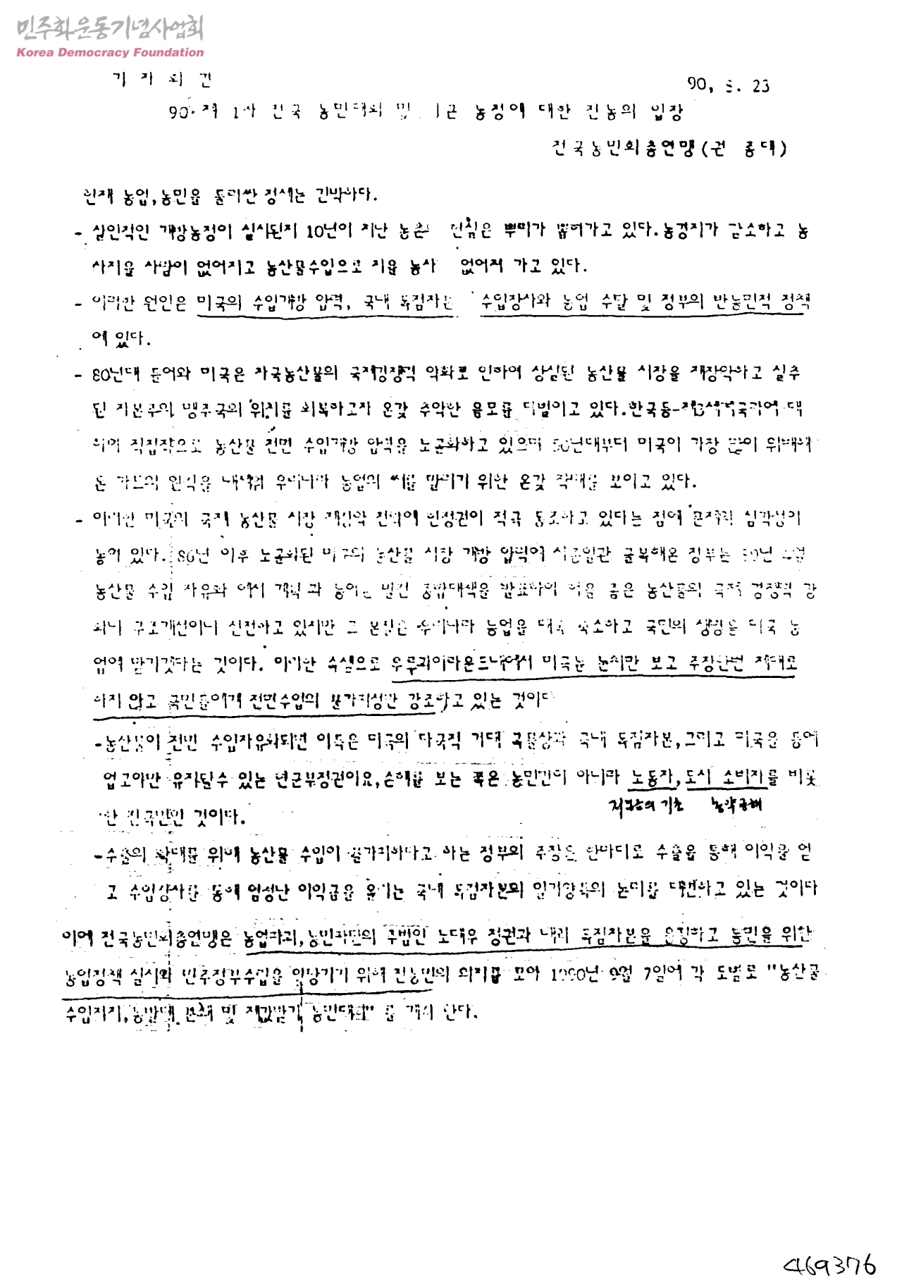 [기자회견 90.제1차 전국 농민대회 및 최근 동정에 대한 진농의 입장]