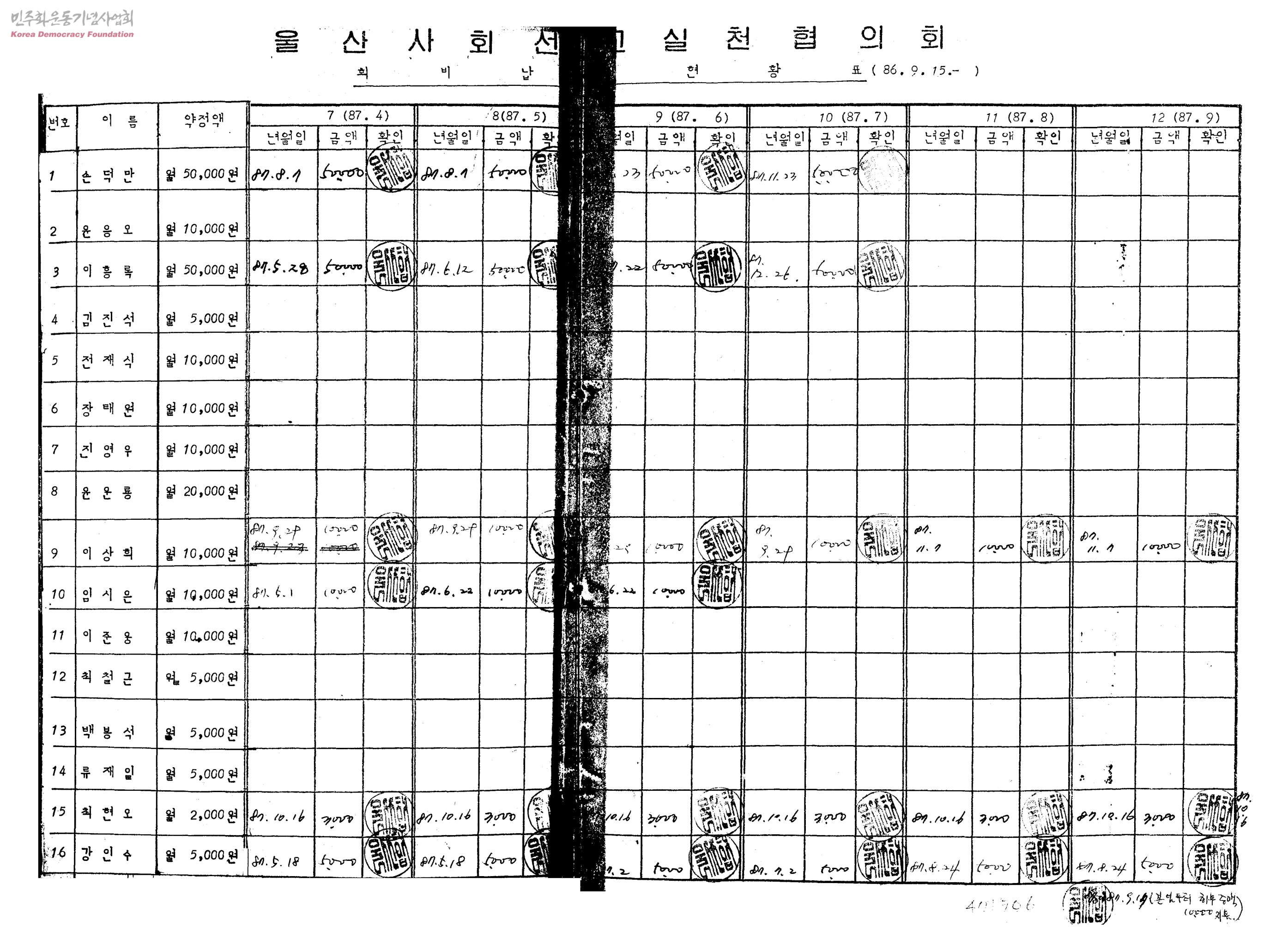 회비납입현황표(86.9.15.-)