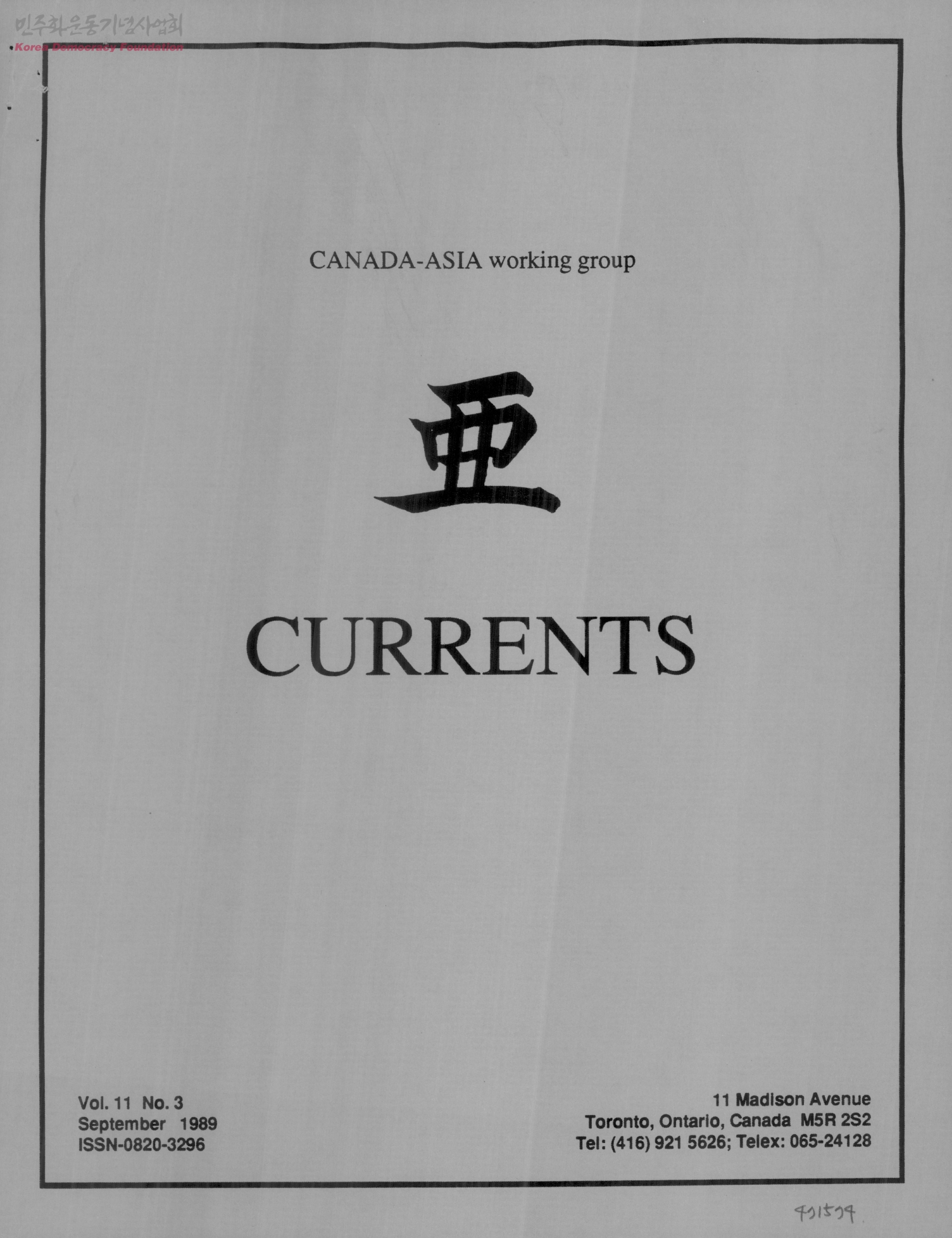 CANADA-ASIA working group 亞 CURRENTS Vol. 11 No. 3 September 1989