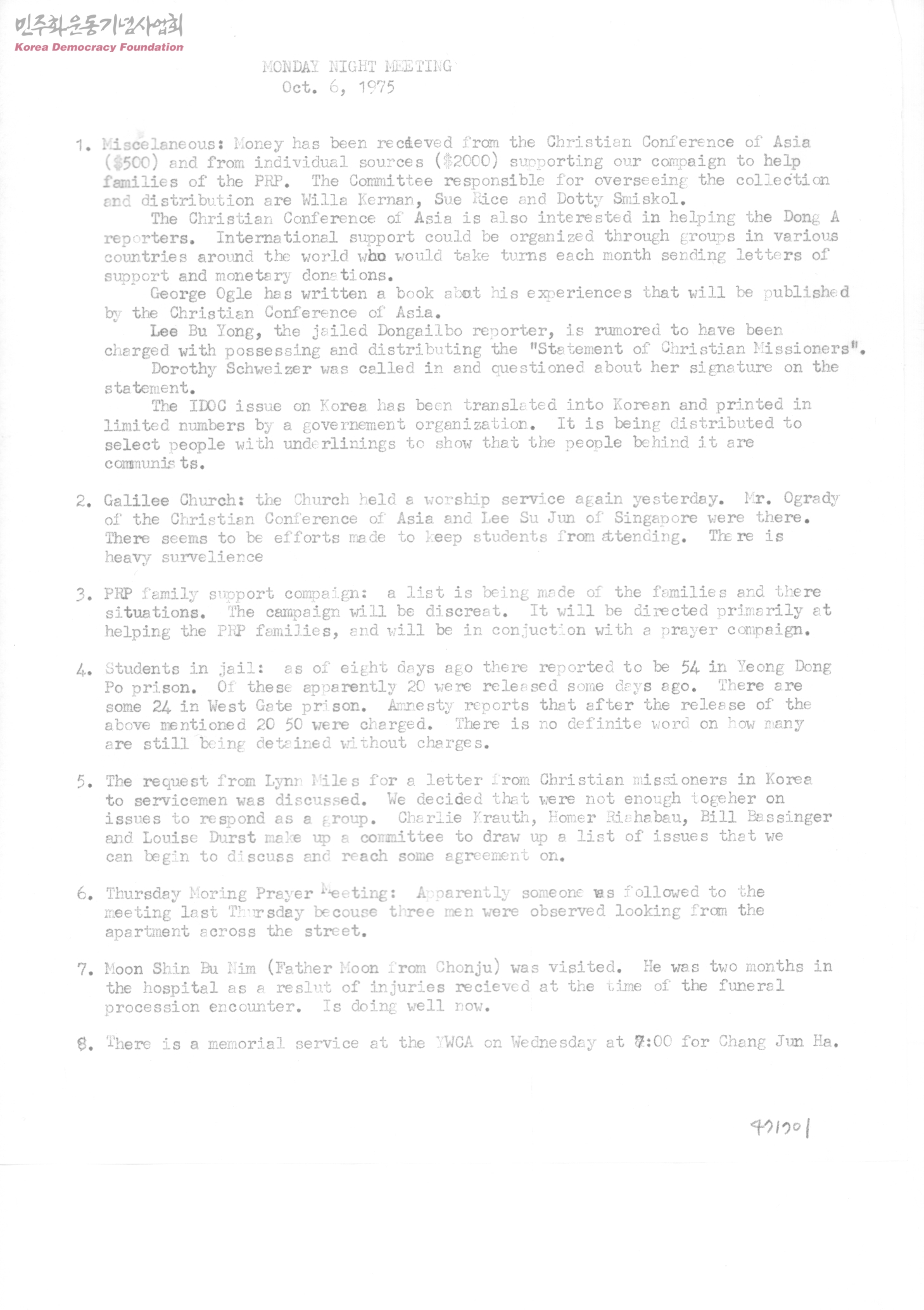 MONDAY NIGHT MEETING Oct. 6, 1975