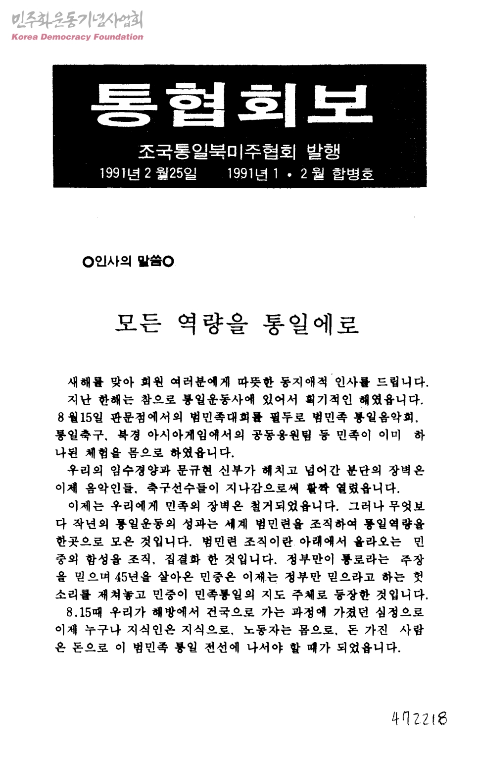 통협회보 1991년 1·2월 합병호