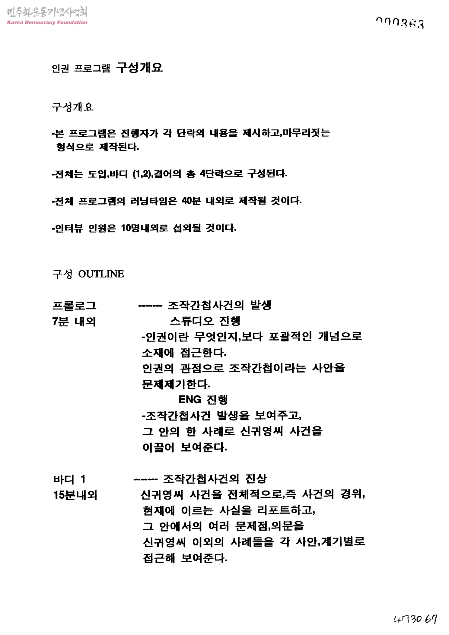 [조작간첩 다큐멘터리 영화 제작 관련 문건]