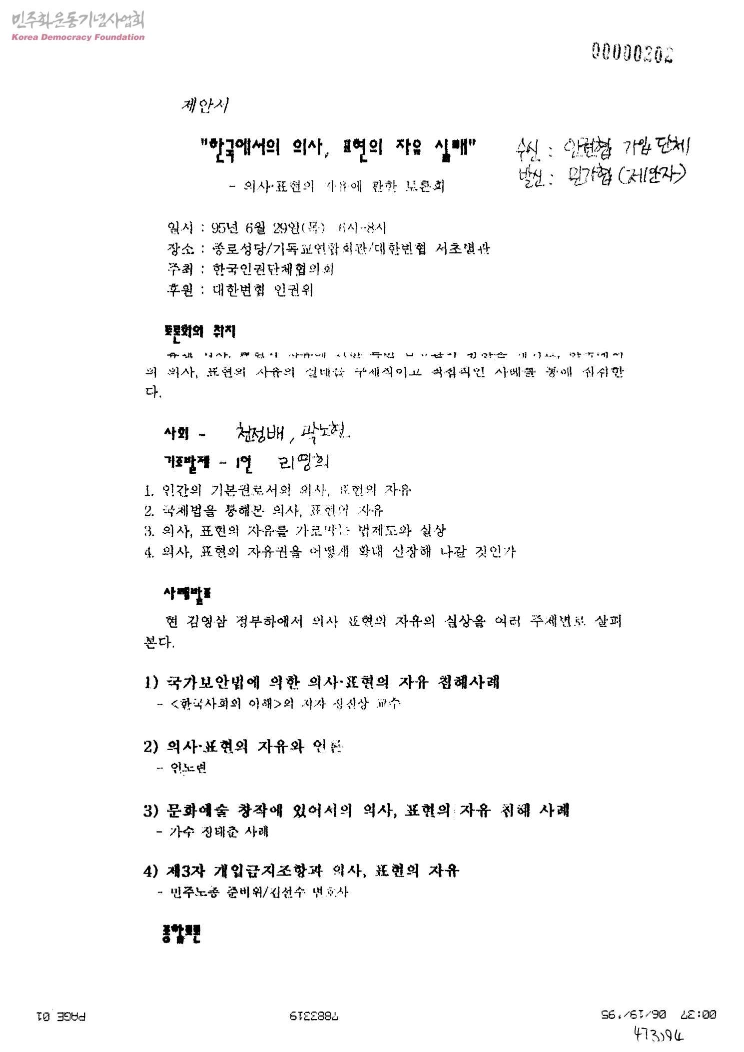 제안서-"한국에서의 의사, 표현의 자유 실태"-의사 표현의 자유에 관한 토론회[수신:인권협가입단체, 발신:민가협(제안자)]