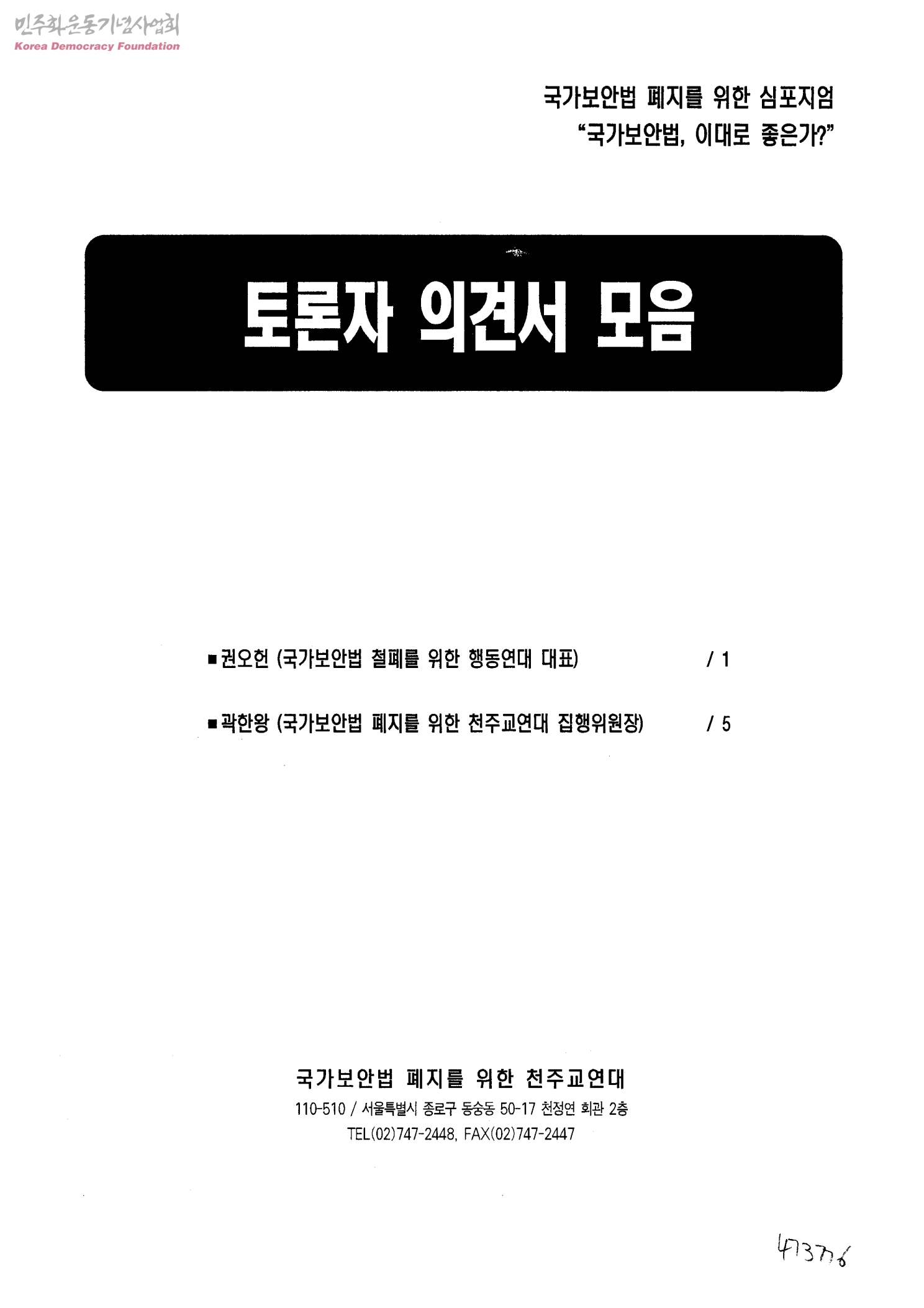 국가보안법 폐지를 위한 심포지엄-"국가보안법, 이대로 좋은가?"-토론자 의견서 모음