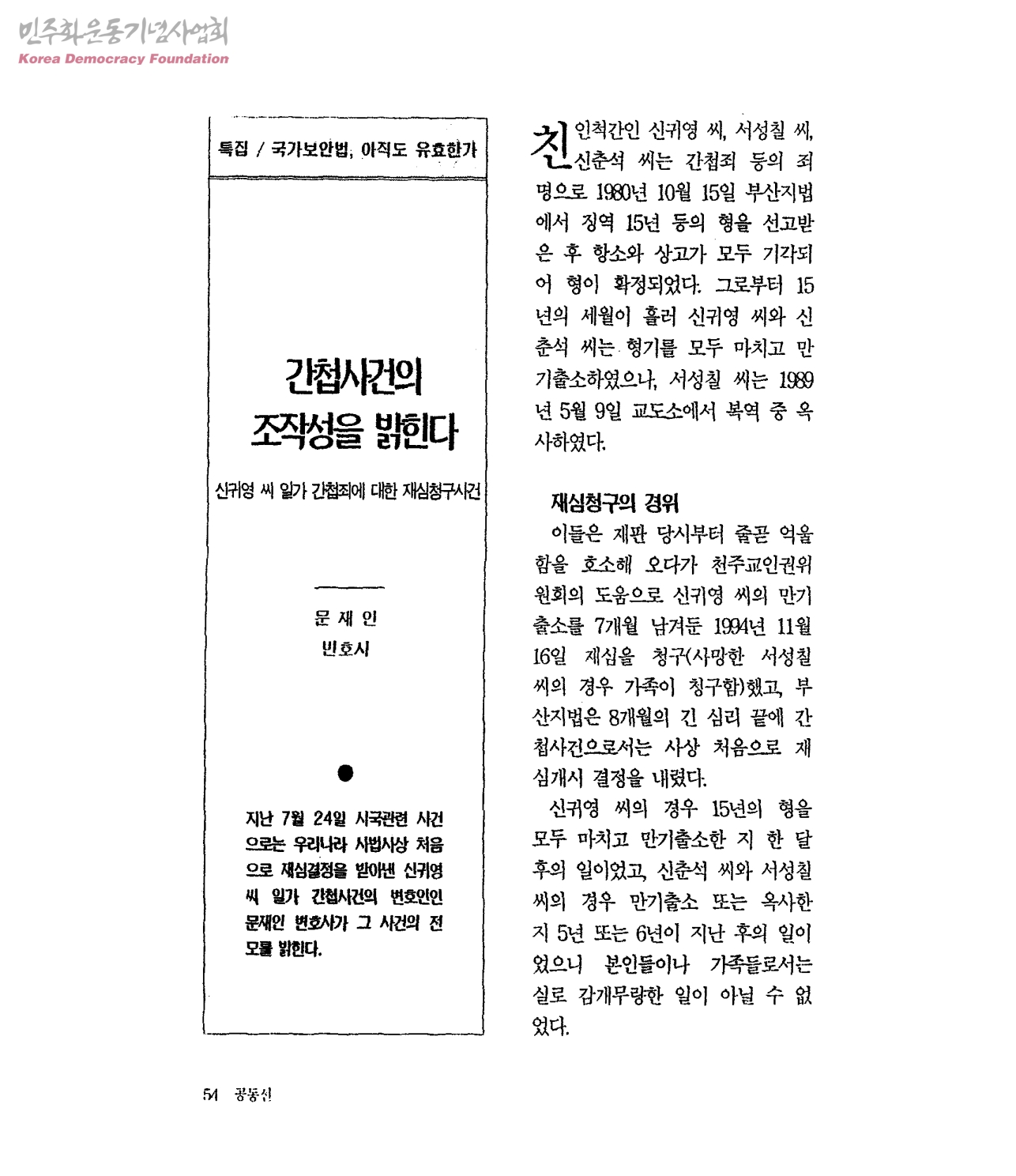 간첩사건의 조작성을 밝힌다-신귀영 씨일가 간첩죄에 대한 재심청구사건