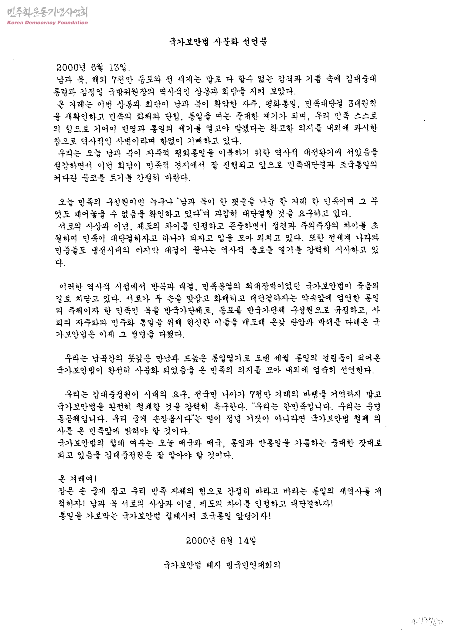 국가보안법 사문화 선언문