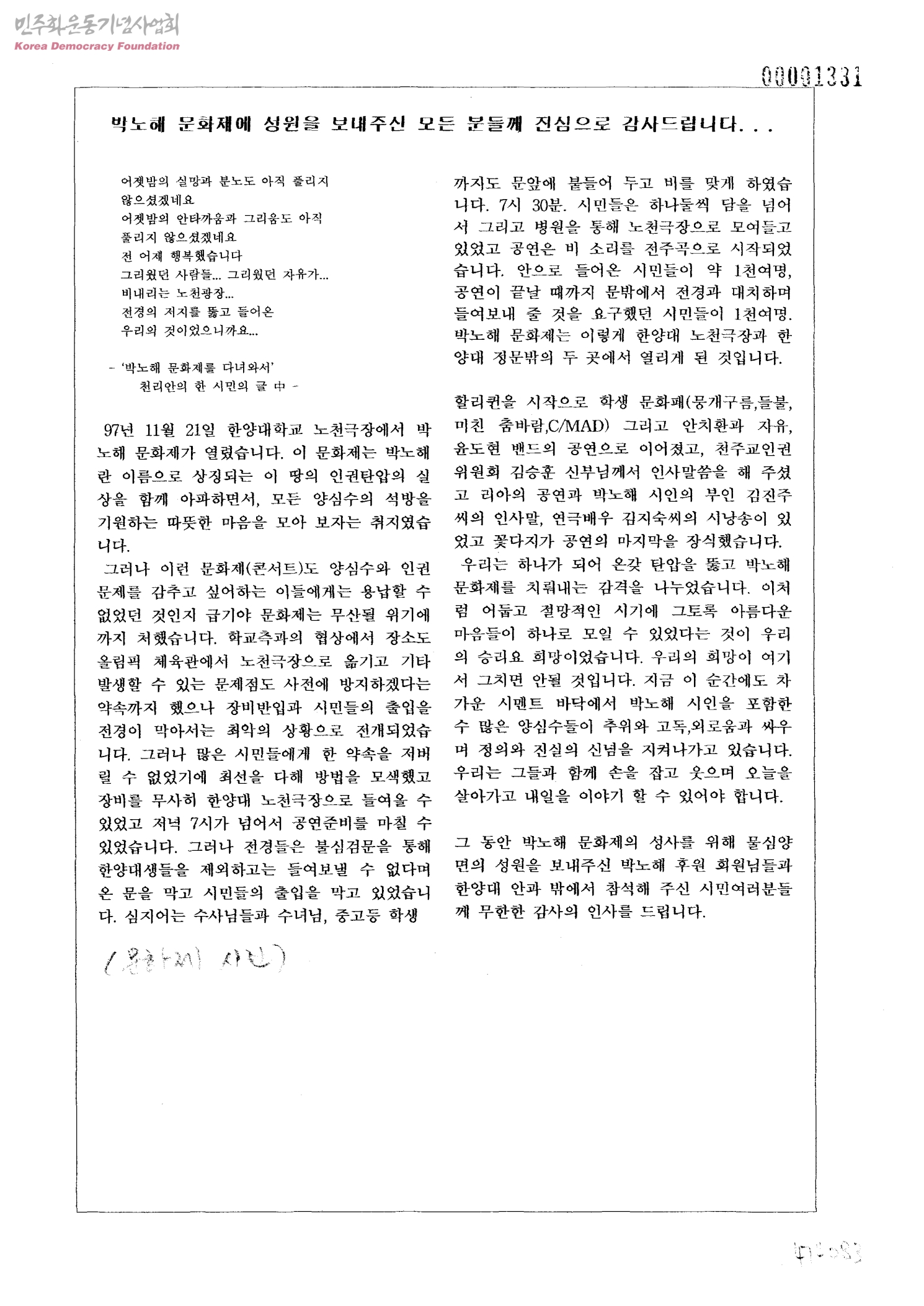 - 생산자 및 기증자가 ‘박용수’인 사진의 사용은 구매신청을 클릭하여 직접 사진 구매 신청을 하실 수 있습니다. 생산자 및 기증자가 ‘경향신문사’인 사진의 사용은 경향신문사 담당자(02-3701-1635)를 통해 구매하실 수 있습니다. 그 외의 생산자 및 기증자는 민주화운동기념사업회 사료관 담당자( hyunchaek@kdemo.or.kr / 02-6440-8961 )에 문의바랍니다.