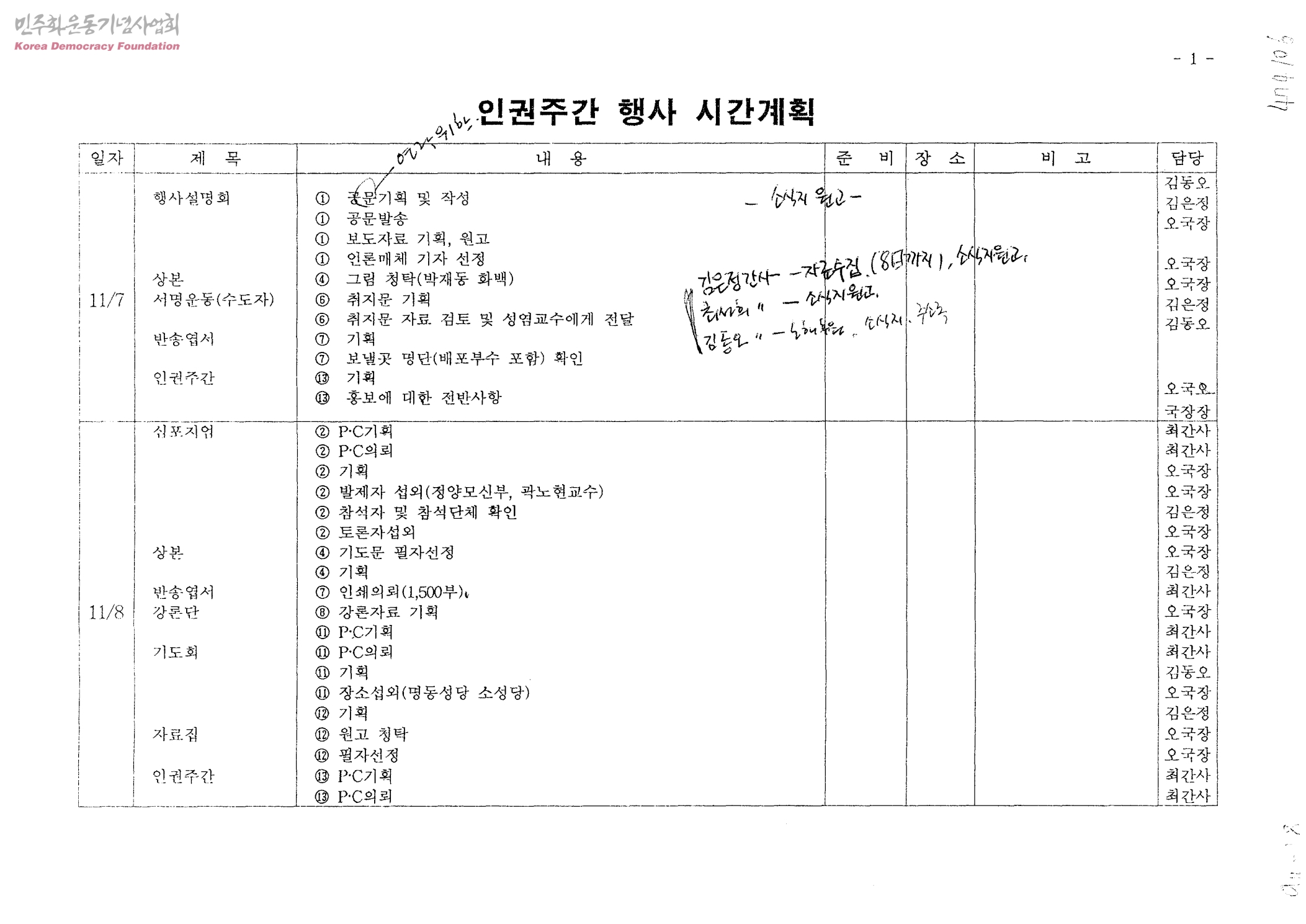 인권주간 행사 시간계획