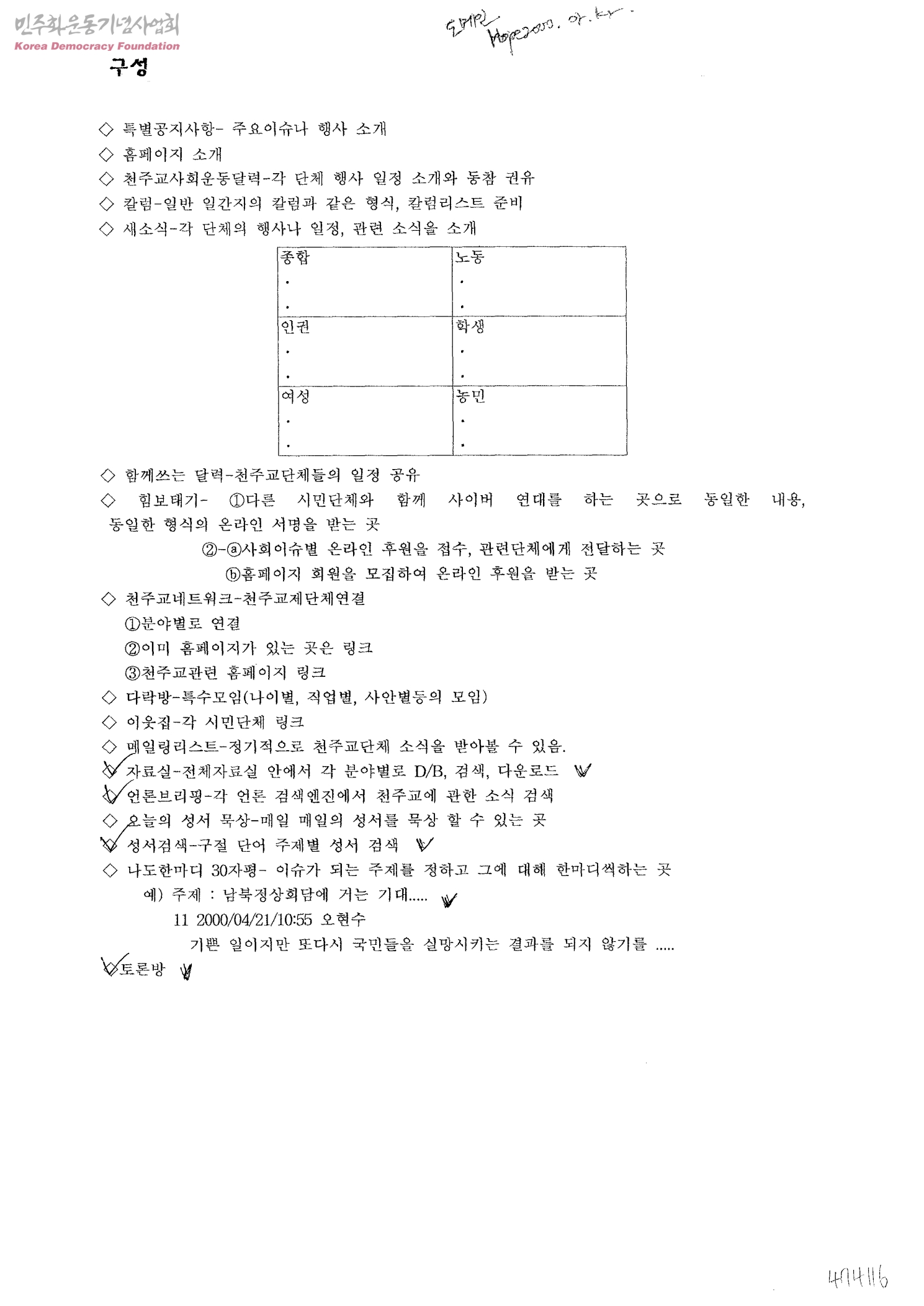 [천주교관련단체 홈페이지 구성]