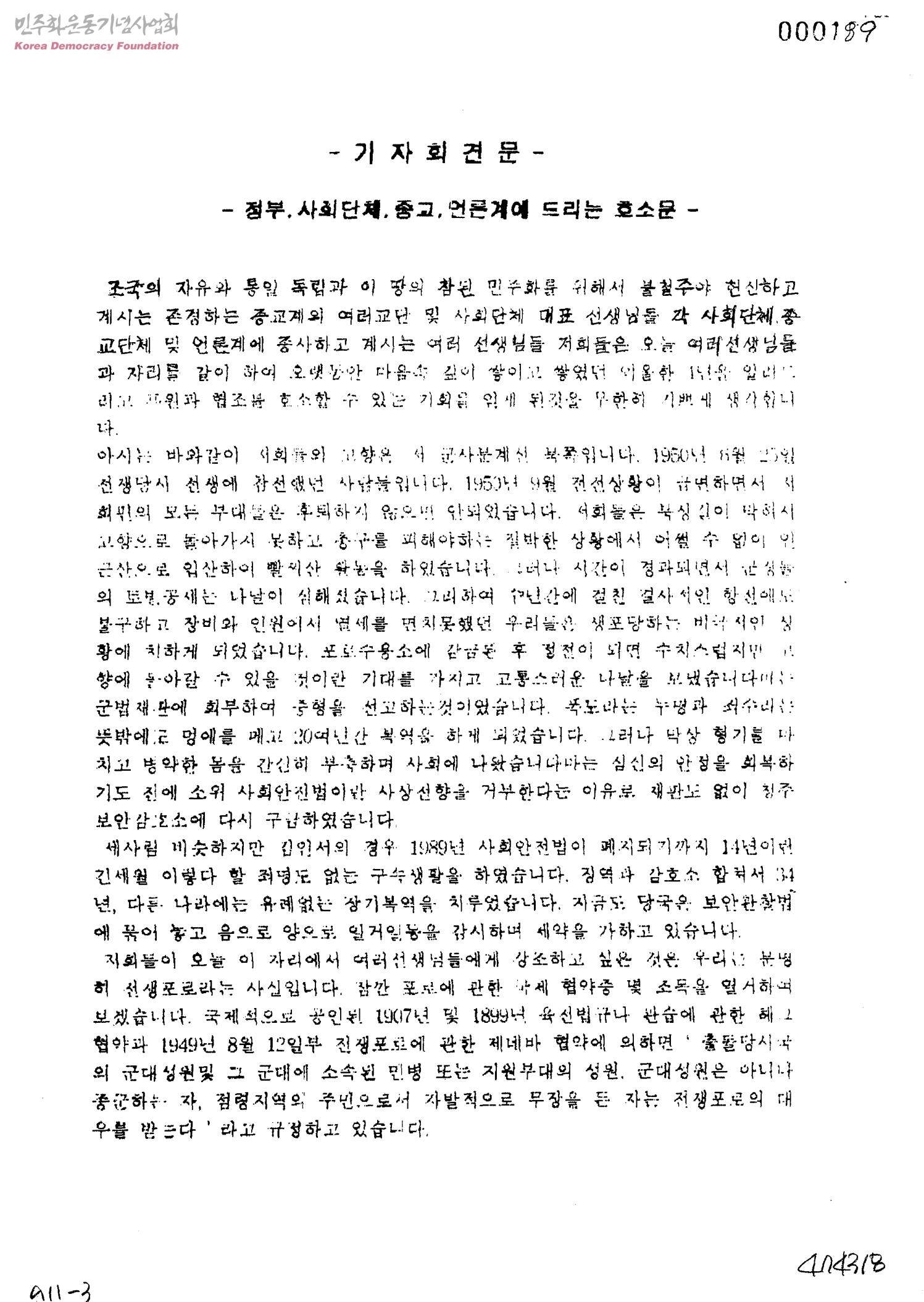 기자회견문-정부,사회단체,종교,언론계에드리는 호소문