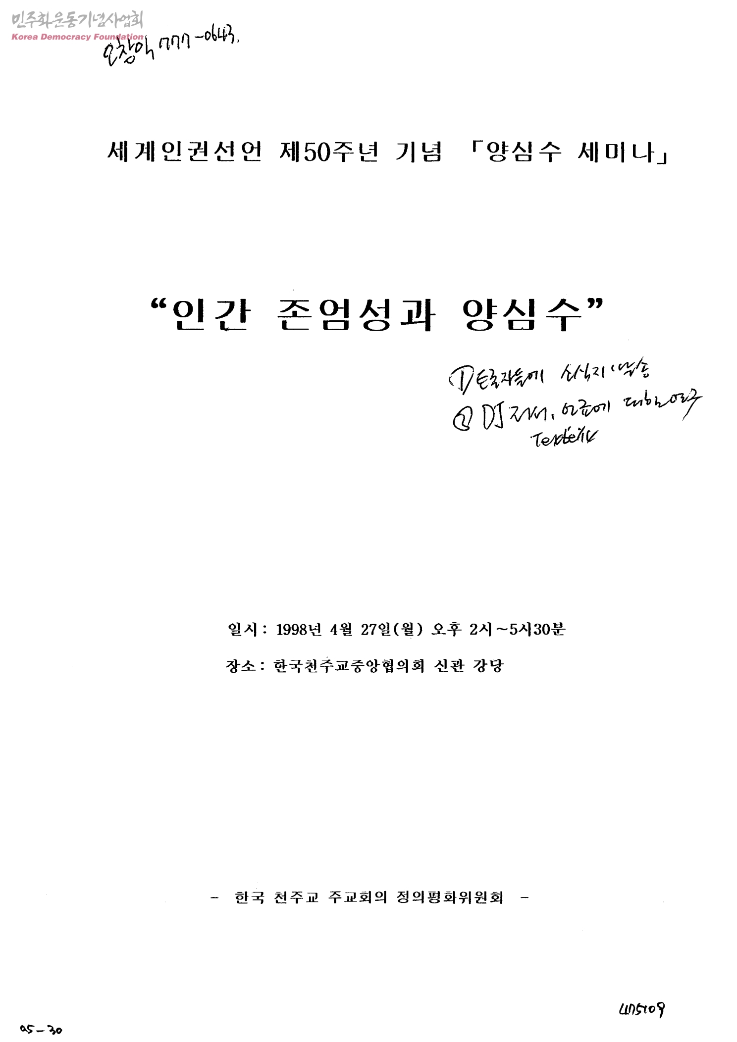 세계인권선언 제50주년 기념 「양심수 세미나」"인간 존엄성과 양심수"