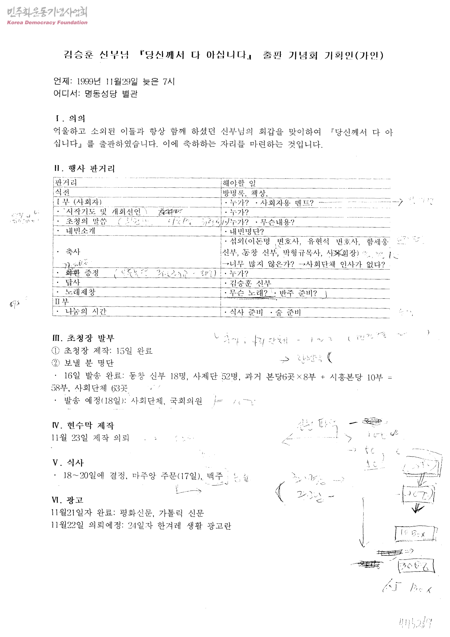 김승훈 신부님 「당신께서 다 아십니다.」출판 기념회 기획안(가안)