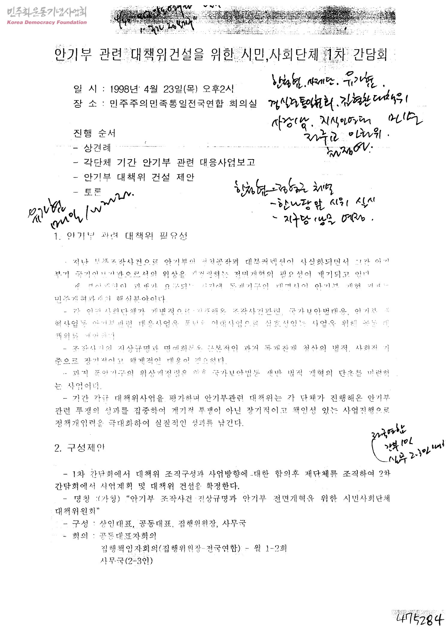 안기부 관련 대책위건설을 위한 시민,사회단체 1차 간담회