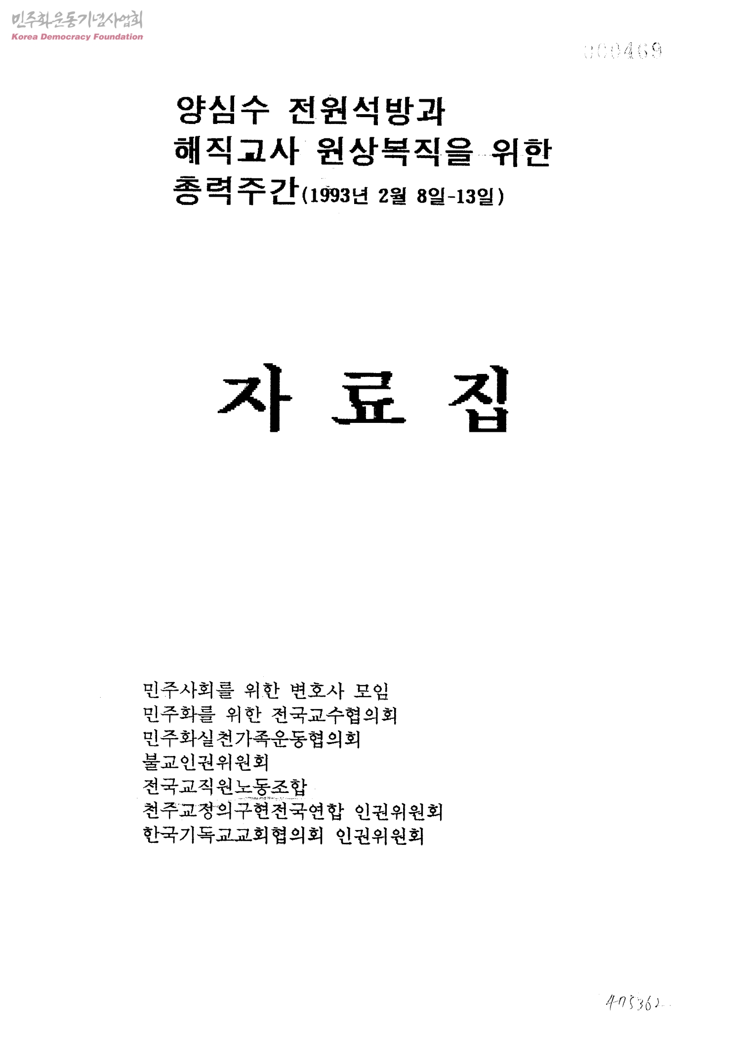 양심수 전원석방과 해직교사 원상복직을 위한 총력주간(1993년 2월8일-13일)-자료집