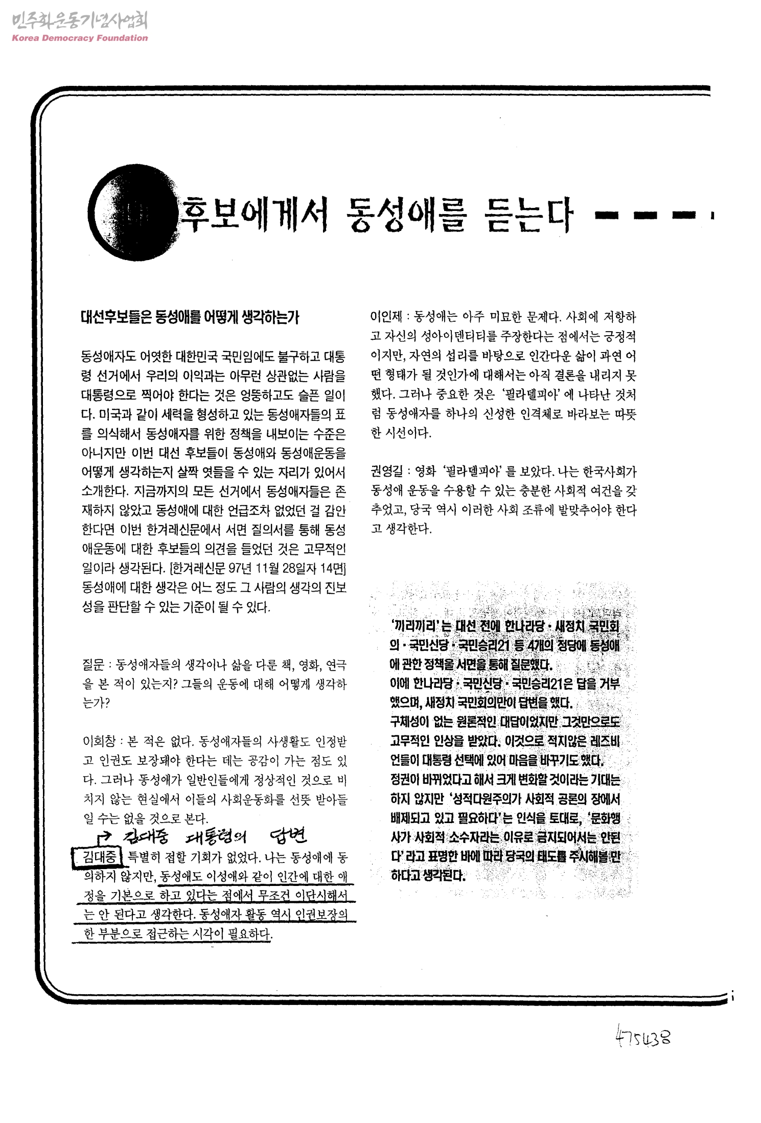 대선후보에게 동성애를 듣는다