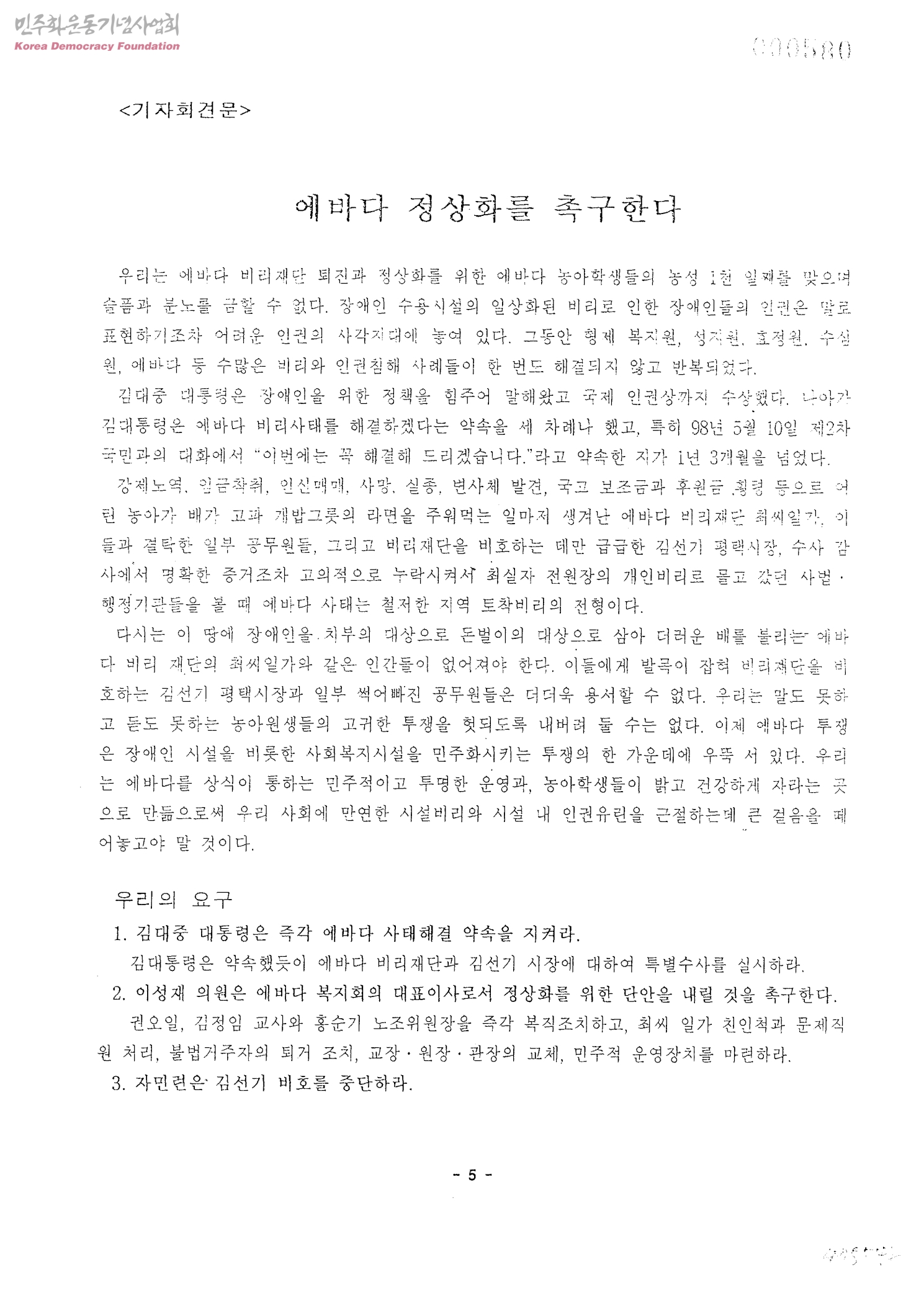 - 에바다정상화를위한연대회의, 건강사회를위한한약사회, 자유·평등·연대를위한광주인권운동센터, 민주언론운동시민연합, 민주화를위한전국교수협의회, 외국인노동자대핵협의회, 전국농민총연맹, 전북평화와인권연대, 정치개혁시민연대, 주거권실현을위한국민연합, 청년진보당인권위원회, 포럼2001, 한국가톨릭사회교육협회, 한국교회여성연합회, 한국노동이론정책연구소, 한국성폭력상담소, 한국여성민우회, 한국여성의전화연합
