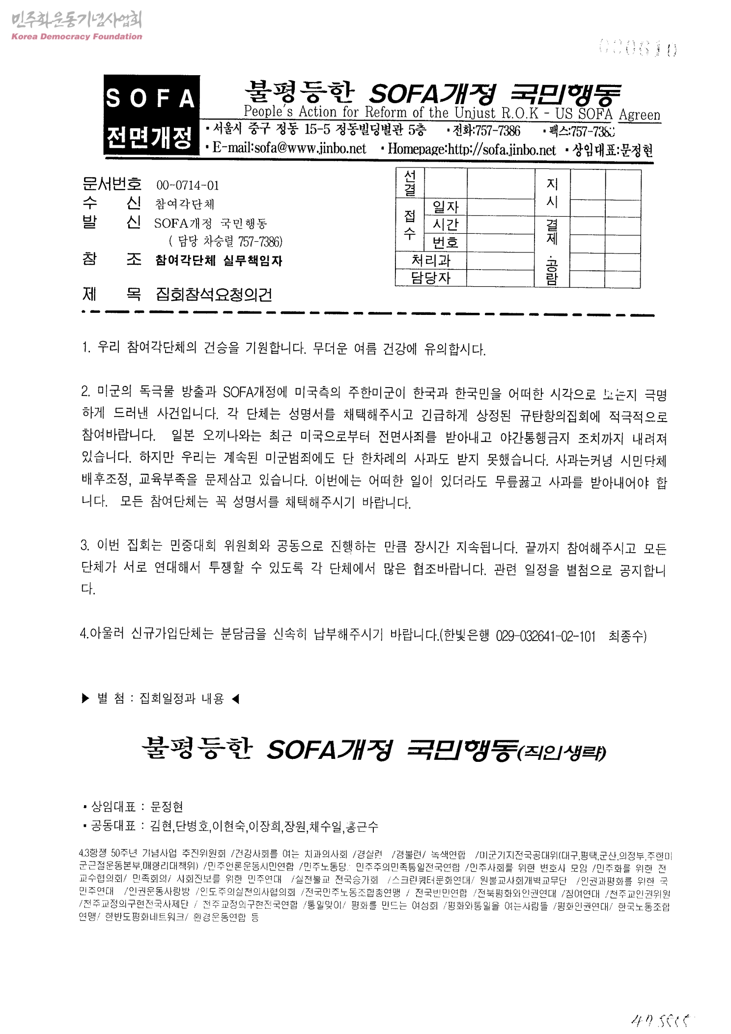 집회참석요청의건[수신:참여각단체, 발신:SOFA개정 국민행동]