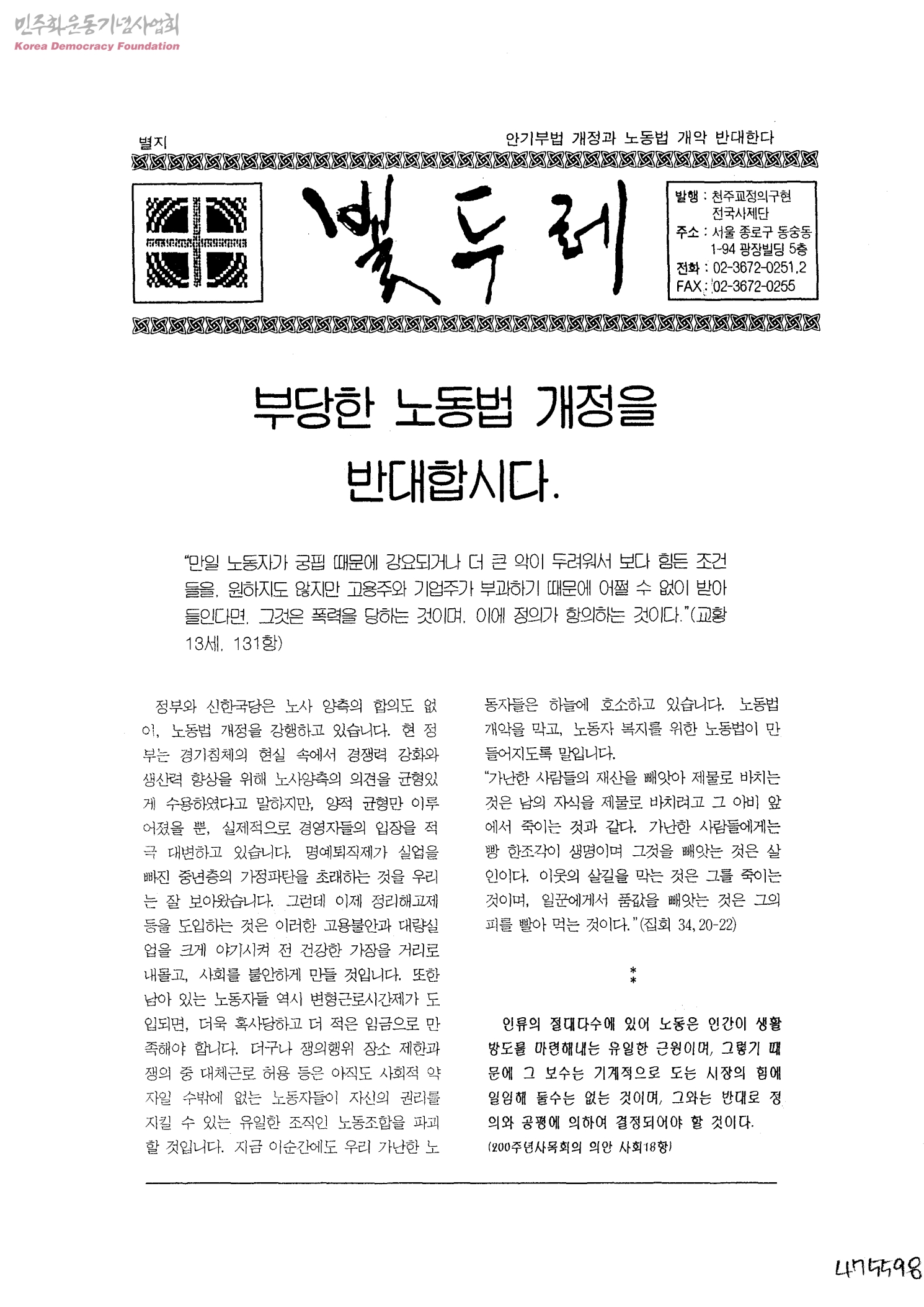 빛두레 별지 부당한 노동법 개정을 반대합시다