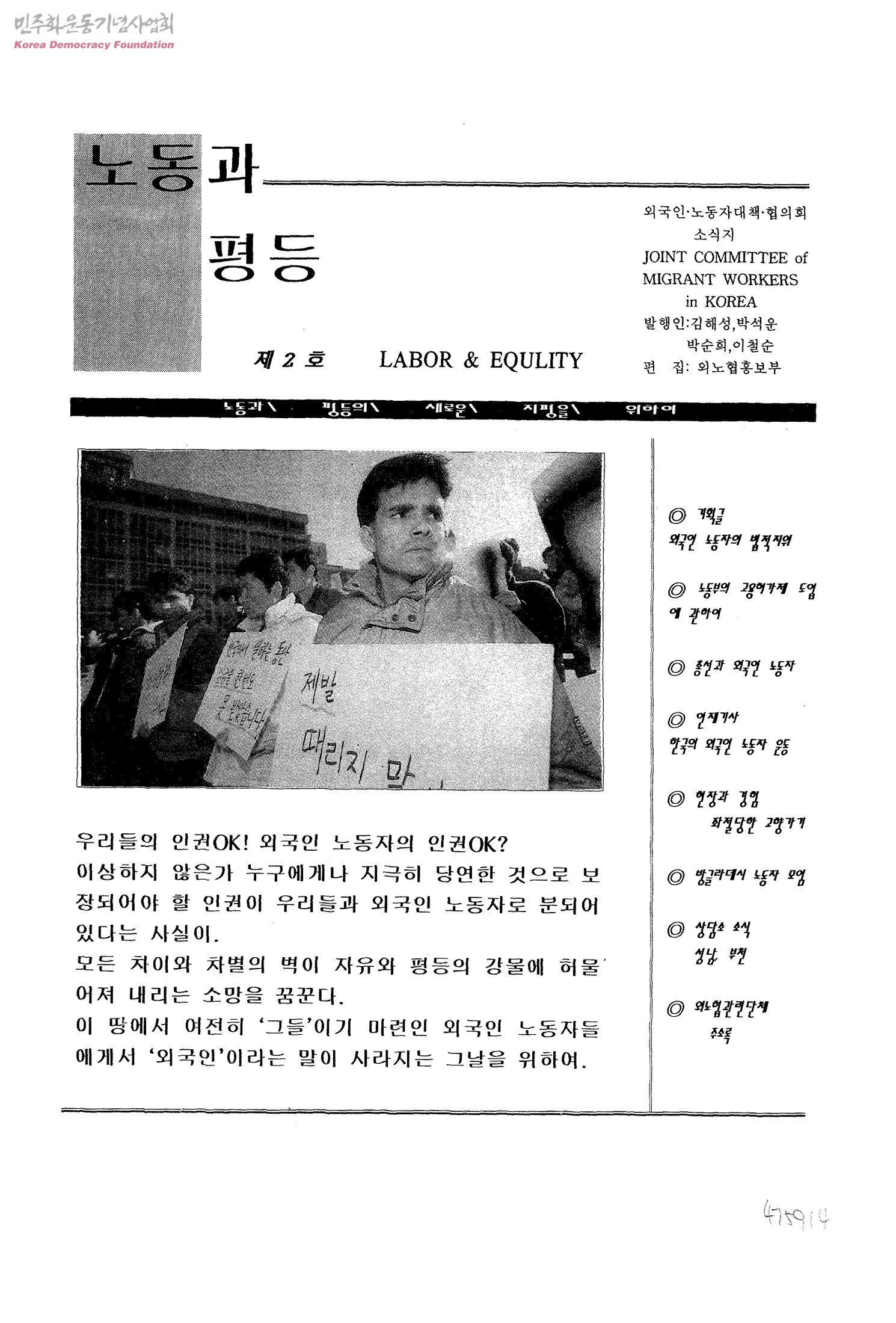 노동과평등-외국인·노동자대책·협의회소식지 제2호