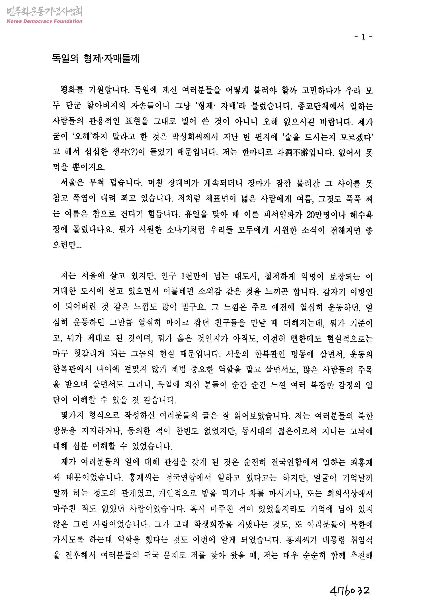 [오창익이 박성희, 성용승, 최정남, 류세홍, 도종화에게 보내는 편지]